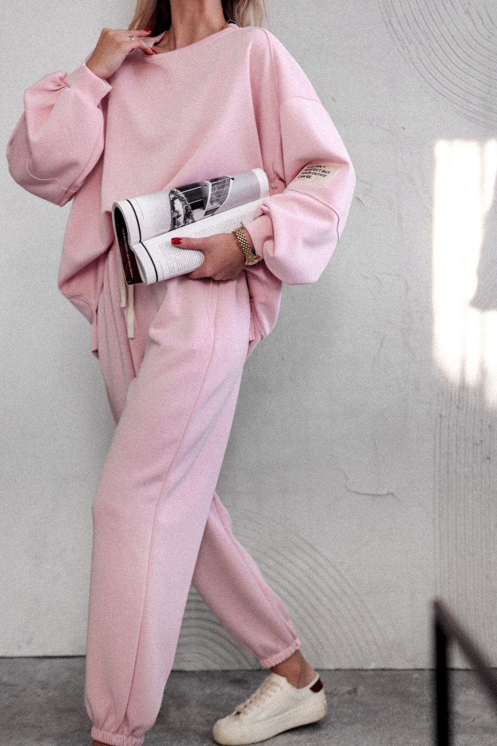 Komplet dresowy BRANDT to bezapelacyjny MUST HAVE w każdej garderobie! Bluza o luźniejszym kroju, która zapewni swobodę ruchów. Posiada okrągły dekolt oraz długi rękaw typu balloon zakończony mankietem. Wyjątkowego charatkeru nadają ozdobne przeszycia oraz naszywka. Spodnie w wysokim stanem. Szerokość w pasie regulowana za pomocą gumy oraz sznurka. Posiadają dwie funkcjonalne kieszenie po bokach. Nogawki zakończone ściągaczem. Komplet wykonany jest z miękkiej oraz przyjemnej w dotyku tkaniny. Sprawdzi się idealnie w stylizacjach na co dzień.