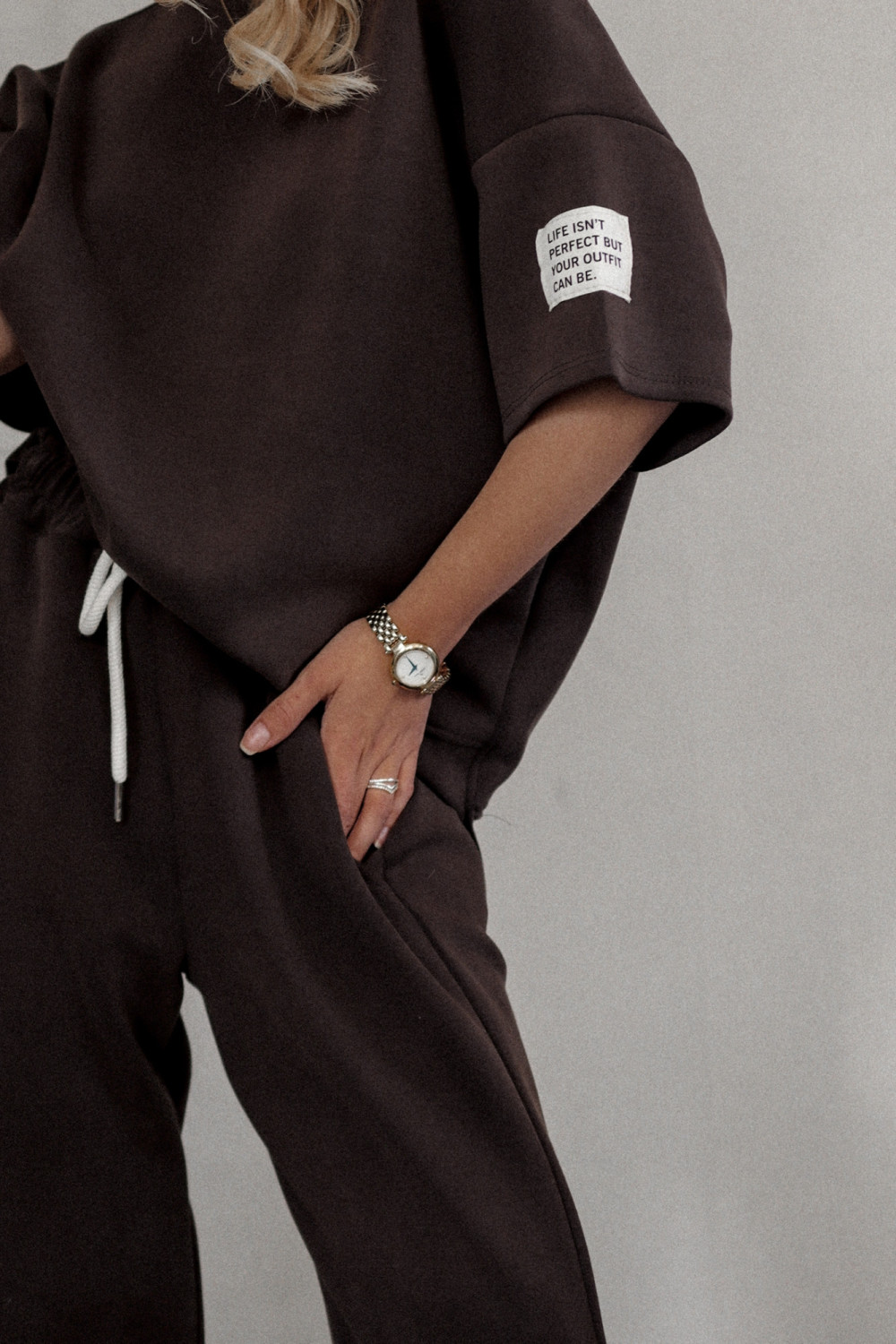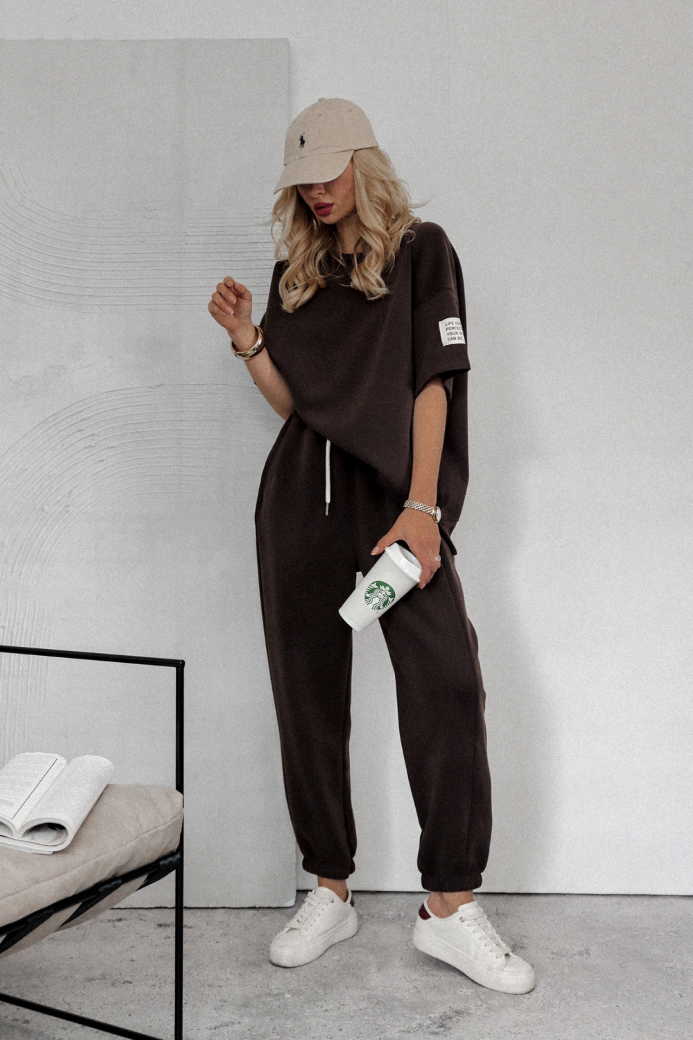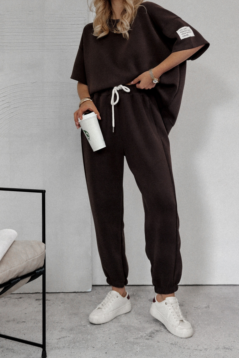 Komplet dresowy BRANDT to bezapelacyjny MUST HAVE w każdej garderobie! Bluza o luźniejszym kroju, która zapewni swobodę ruchów. Posiada okrągły dekolt oraz króki rękaw. Wyjątkowego charatkeru nadają ozdobne przeszycia oraz naszywka. Spodnie w wysokim stanem. Szerokość w pasie regulowana za pomocą gumy oraz sznurka. Posiadają dwie funkcjonalne kieszenie Z PRZODU. Nogawki zakończone ściągaczem. Komplet wykonany jest z miękkiej oraz przyjemnej w dotyku tkaniny. Sprawdzi się idealnie w stylizacjach na co dzień.