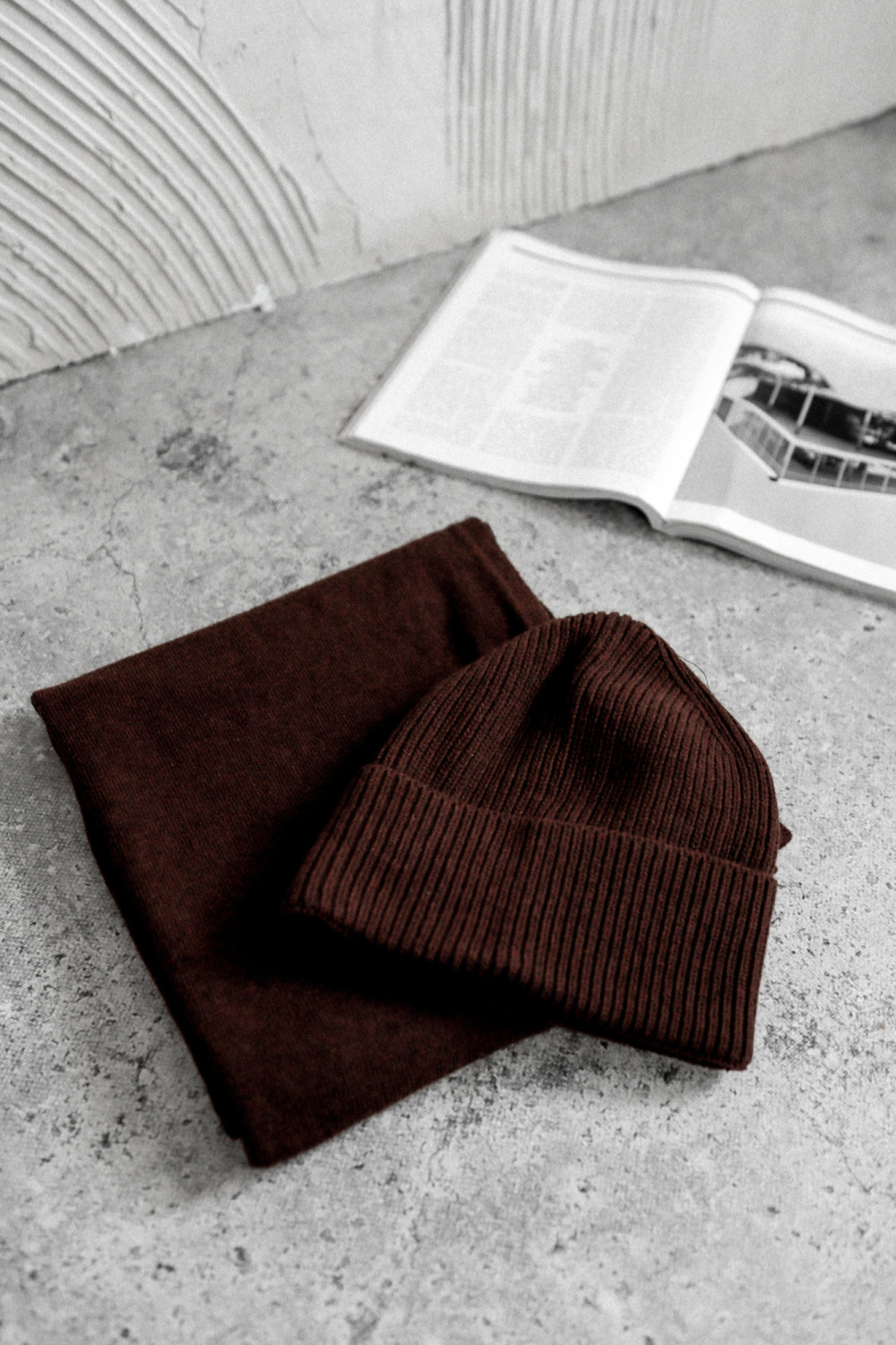 CZAPKA + SZALIK EDGE OF AMALFI Z DOMIESZKĄ KASZMIRU I WEŁNY MLECZNA CZEKOLADA