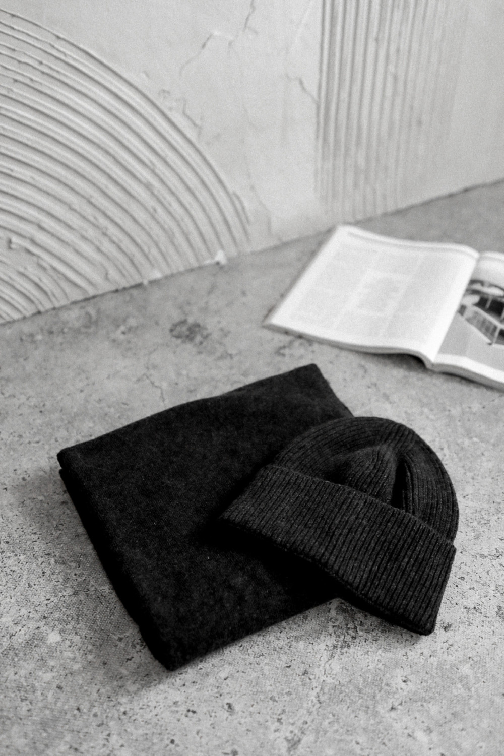 CZAPKA + SZALIK EDGE OF AMALFI Z DOMIESZKĄ KASZMIRU I WEŁNY GRAFIT