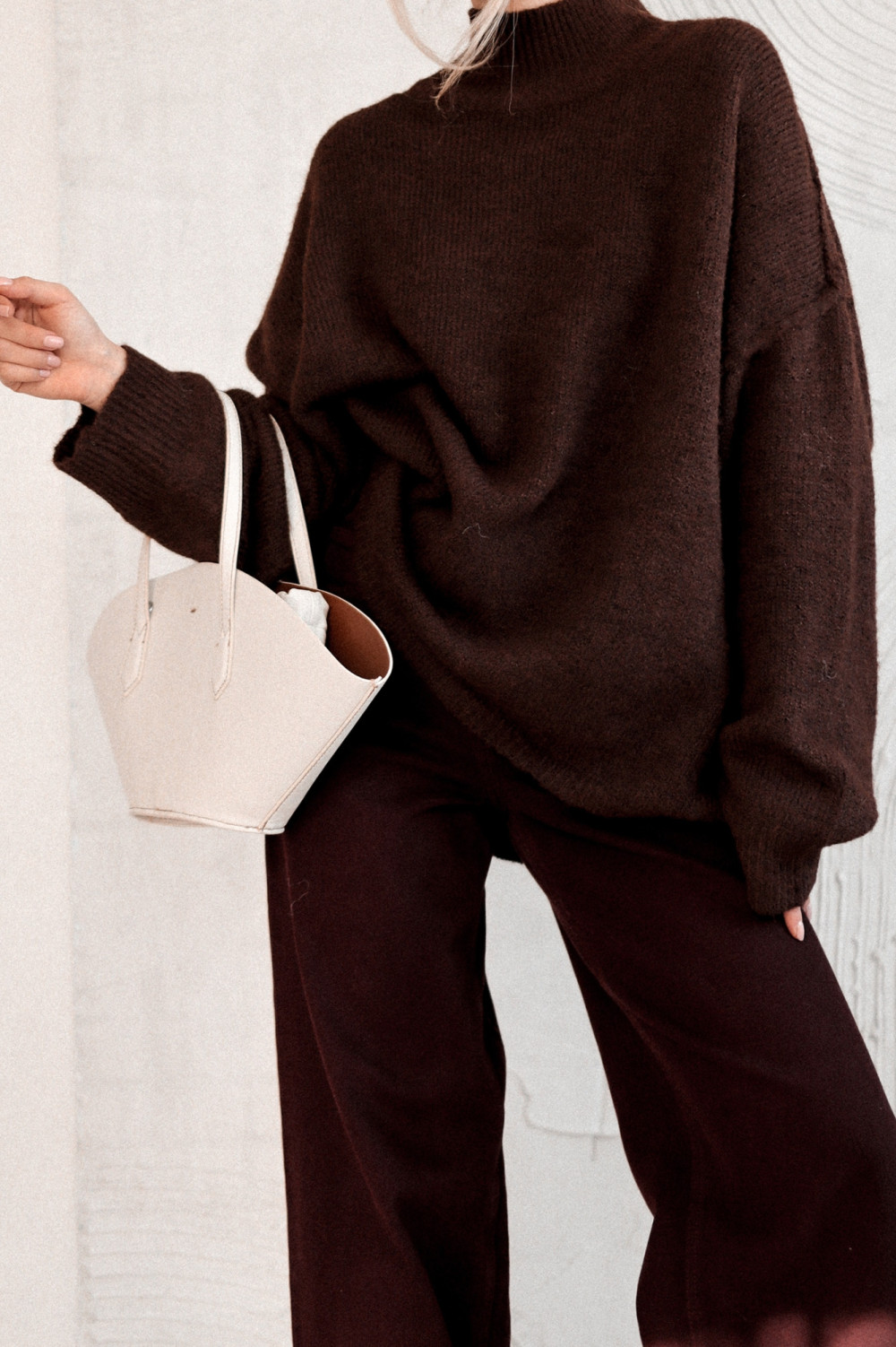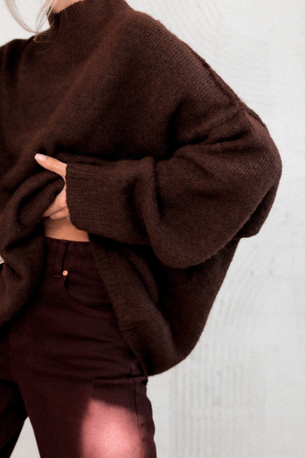SWETER ESPRESSO AFTER DARK O KROJU OVERSIZE CZEKOLADOWY