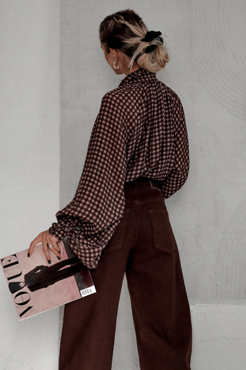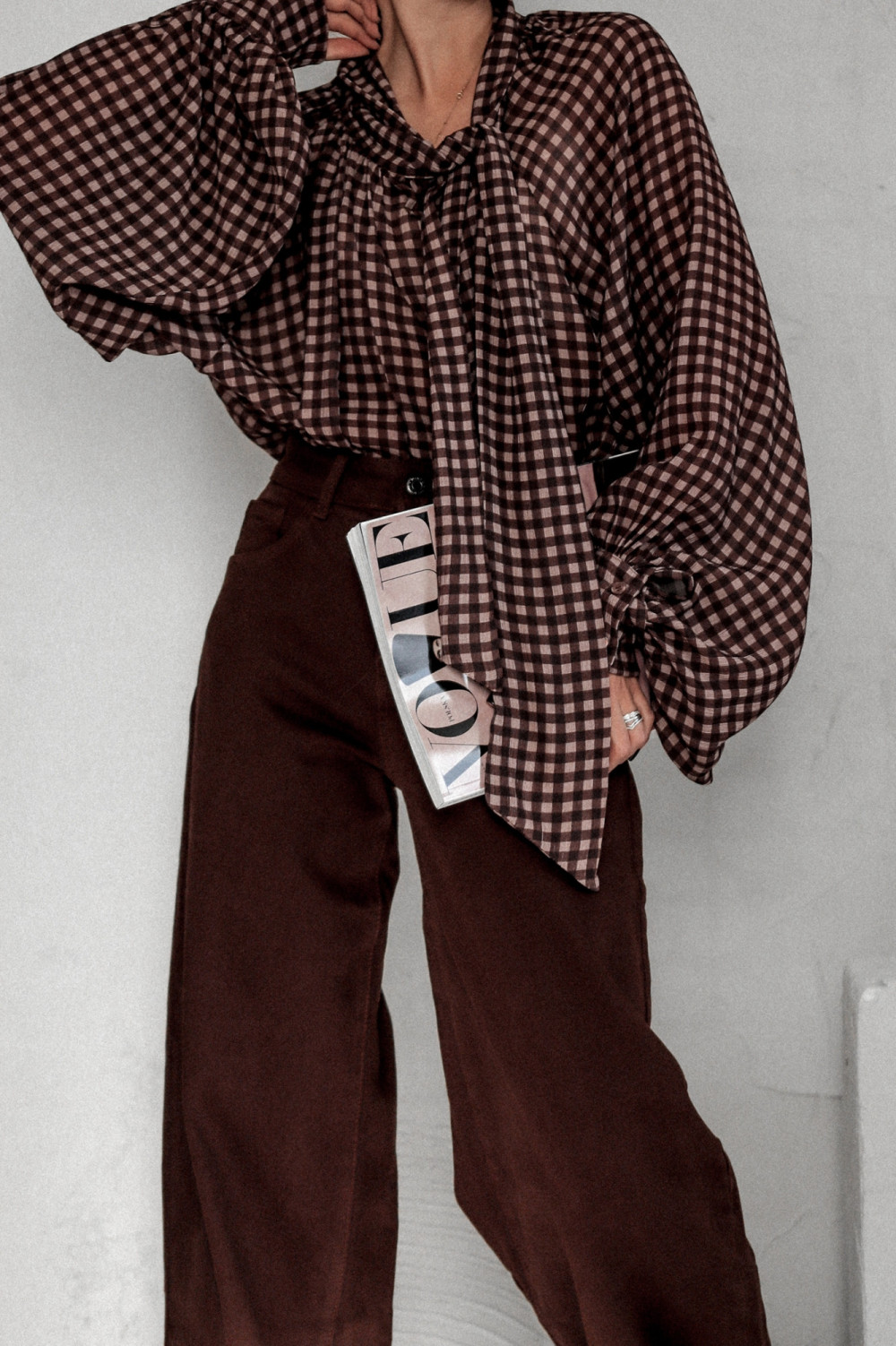 Wzór w ponadczasową kratkę w odcieniach czekoladowego brązu i beżu sprawia, że koszula świetnie komponuje się zarówno z klasycznymi jeansami, jak i skórzanymi spodniami czy ołówkową spódnicą. To must-have sezonu dla świadomej trendów kobiety, która nie boi się modowych akcentów z charakterem.