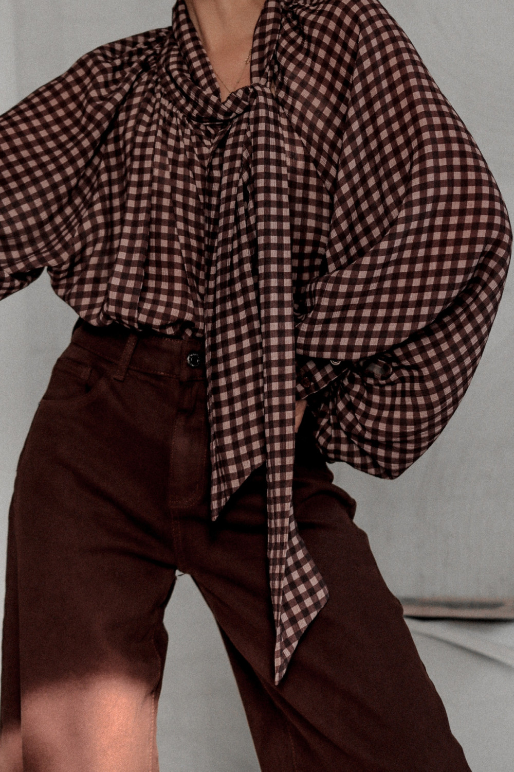 KOSZULA SAVAGE GRACE Z WIĄZANIEM POD SZYJĄ W KRATKĘ