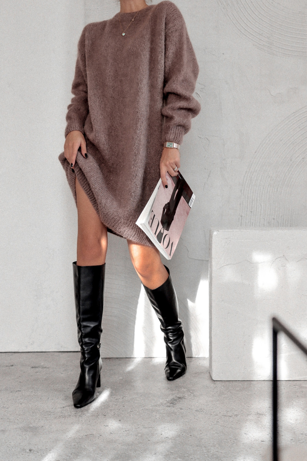 Wykonana w jednym z najmodniejszych kolorów sezonu AW25, ta sukienka to doskonała baza do wielu zestawów – od casualowych z kozakami i oversize’owym płaszczem, po bardziej eleganckie z paskiem i botkami na obcasie. To kwintesencja city chic z nutą luksusu – wygodna, stylowa i z modowym wyczuciem.
