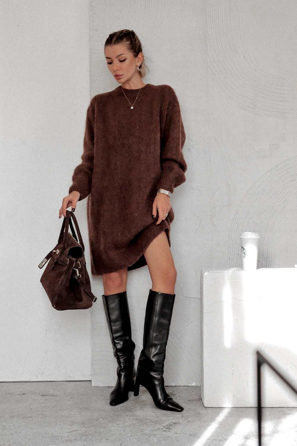 SUKIENKA CHIC CLAW Z DOMIESZKĄ MOHERU MLECZNA CZEKOLADA