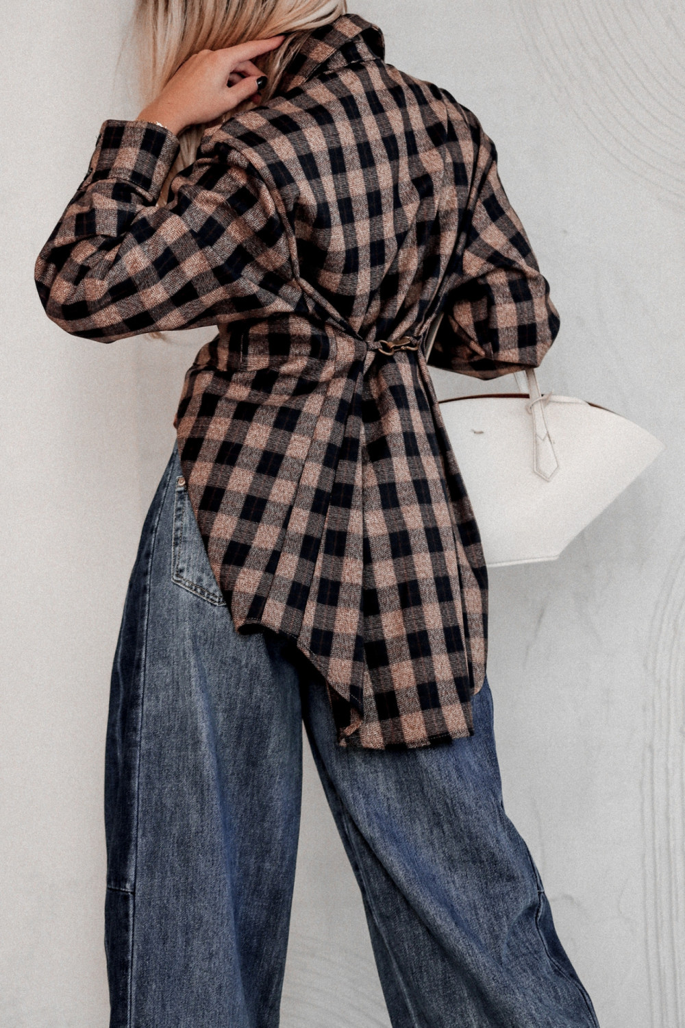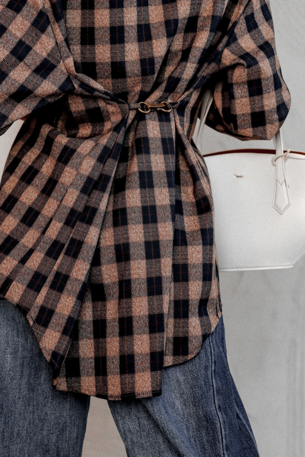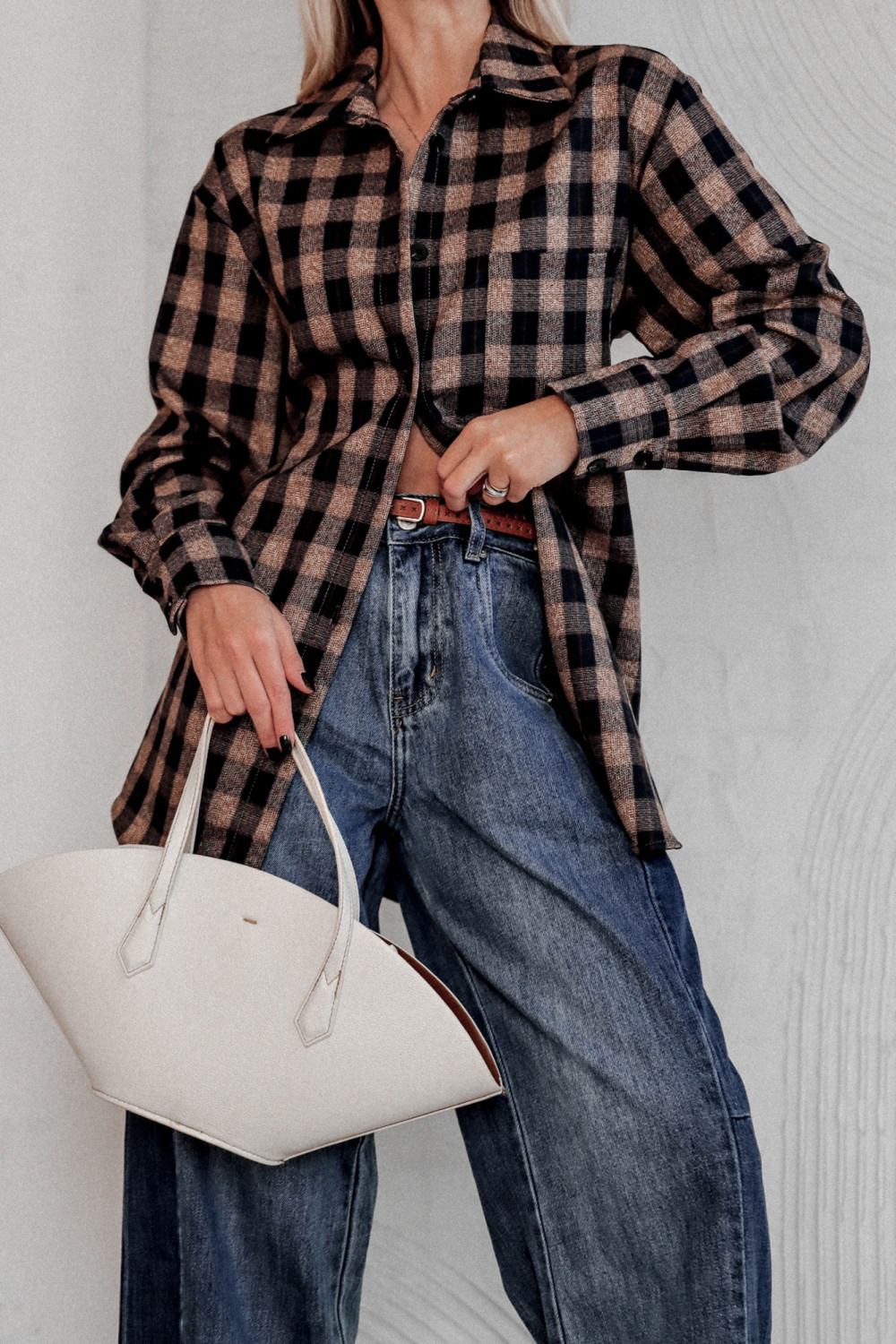 KOSZULA SHARP REBEL Z OZDOBNYM ZAPIĘCIEM BEŻOWO-GRANATOWA