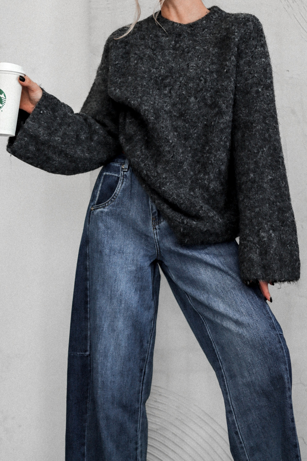 SWETER SUBWAY SOUL Z POSZERZANYM RĘKAWEM GRAFIT MELANŻ