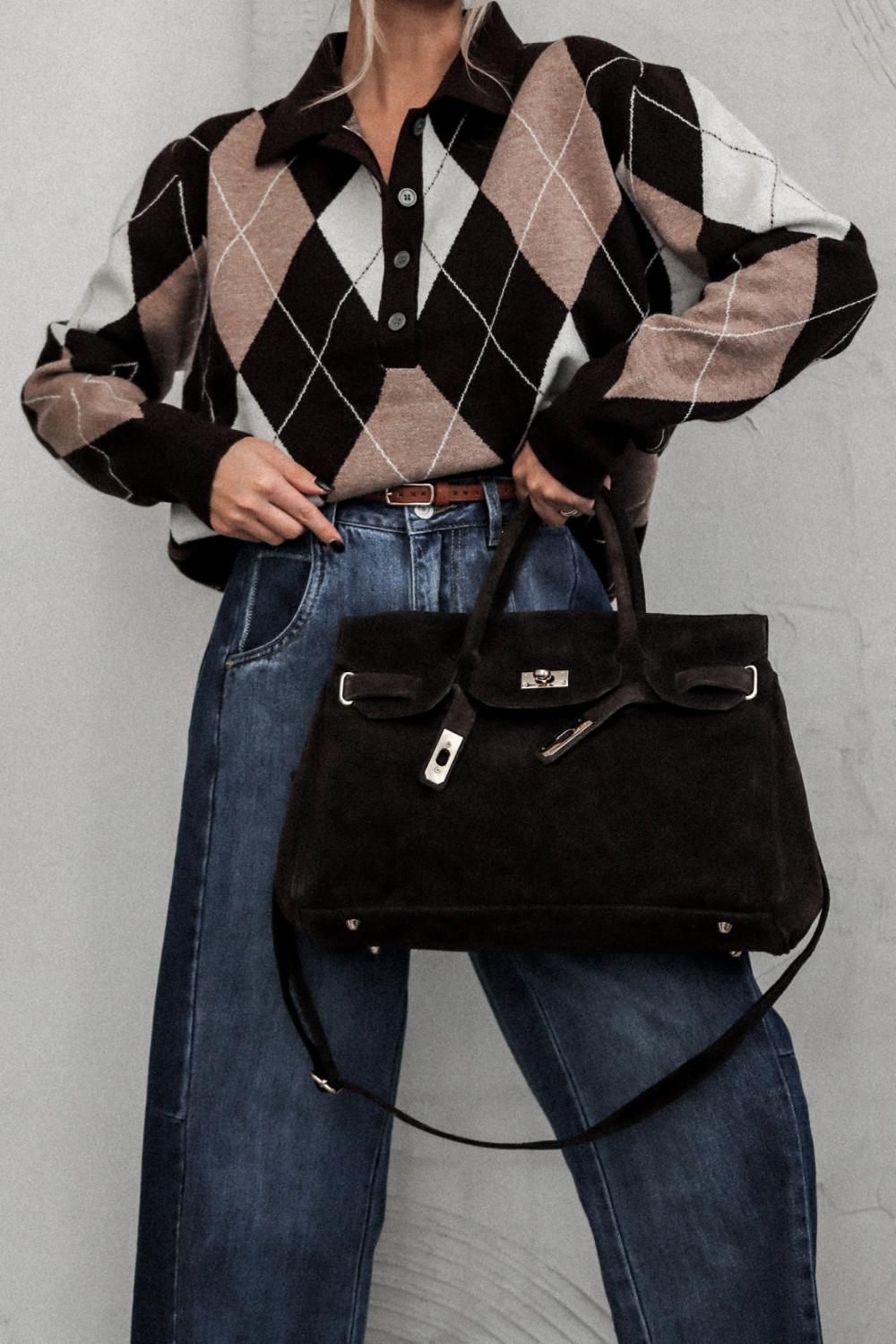 Wzór w czekoladowe romby to jeden z najgorętszych trendów sezonu AW25 – ponadczasowy, a zarazem pełen wyrafinowanego pazura. Ten model świetnie sprawdzi się zarówno w codziennych stylizacjach, jak i w bardziej eleganckim wydaniu.