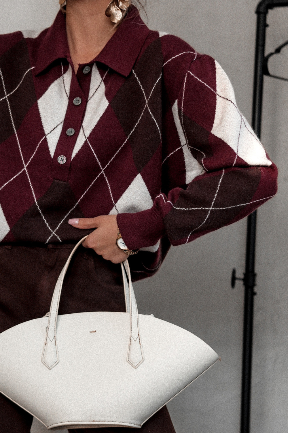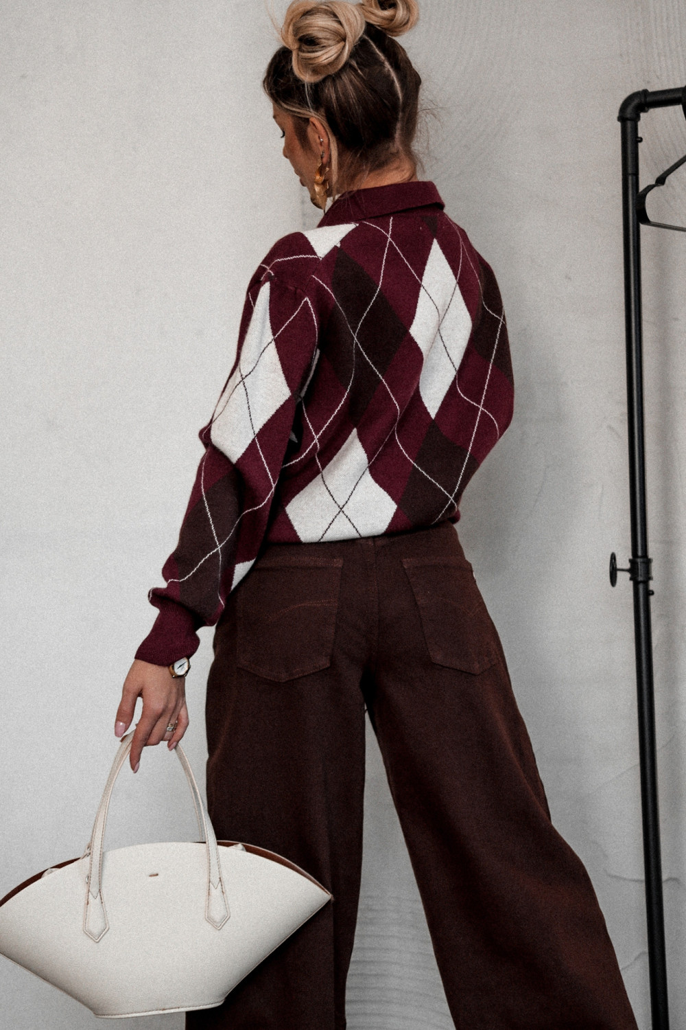 Wzór w czekoladowe romby to jeden z najgorętszych trendów sezonu AW25 – ponadczasowy, a zarazem pełen wyrafinowanego pazura. Ten model świetnie sprawdzi się zarówno w codziennych stylizacjach, jak i w bardziej eleganckim wydaniu.