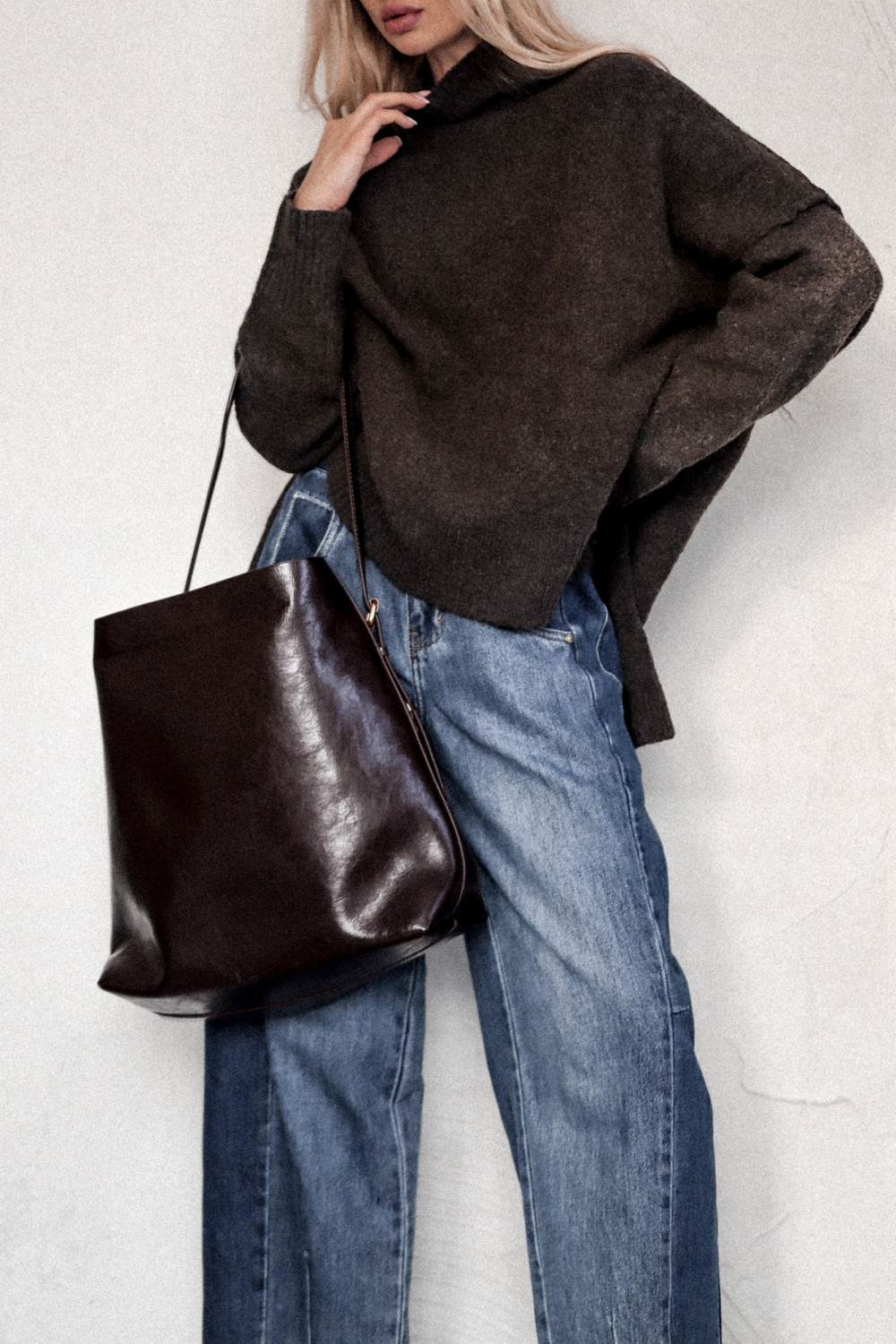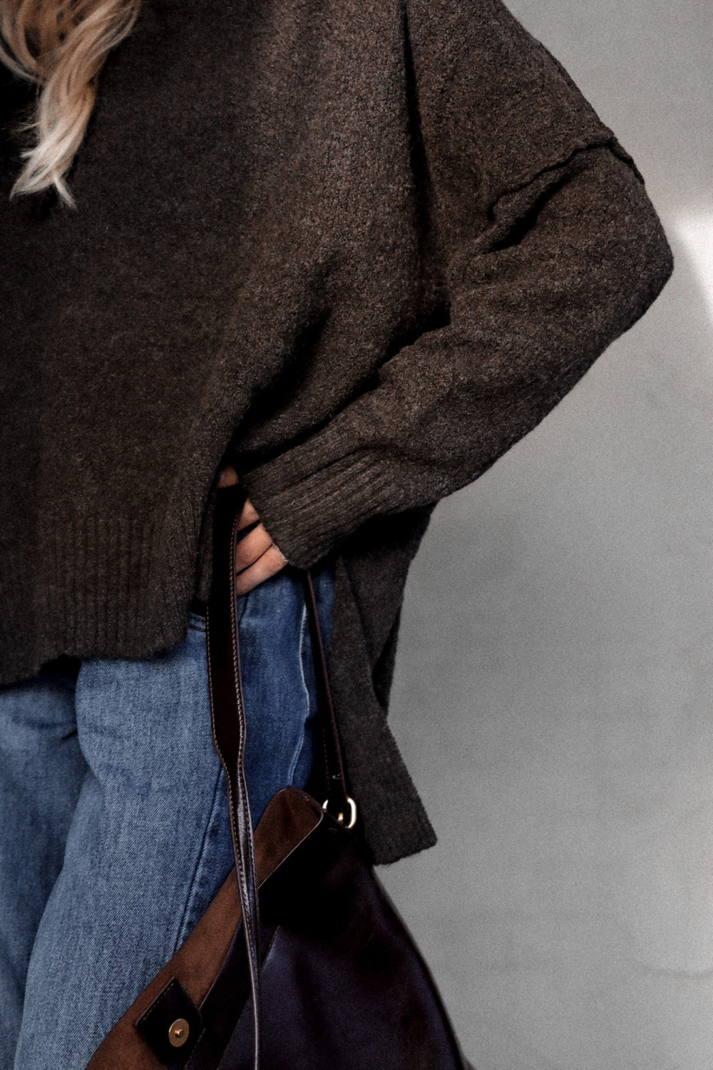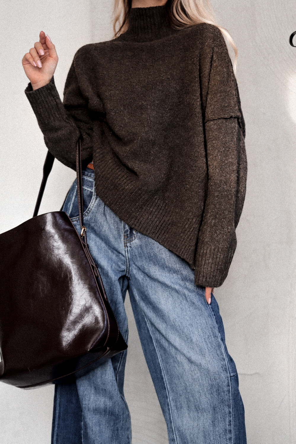 SWETER COZY ATTITUDE Z GOLFEM GORZKA CZEKOLADA