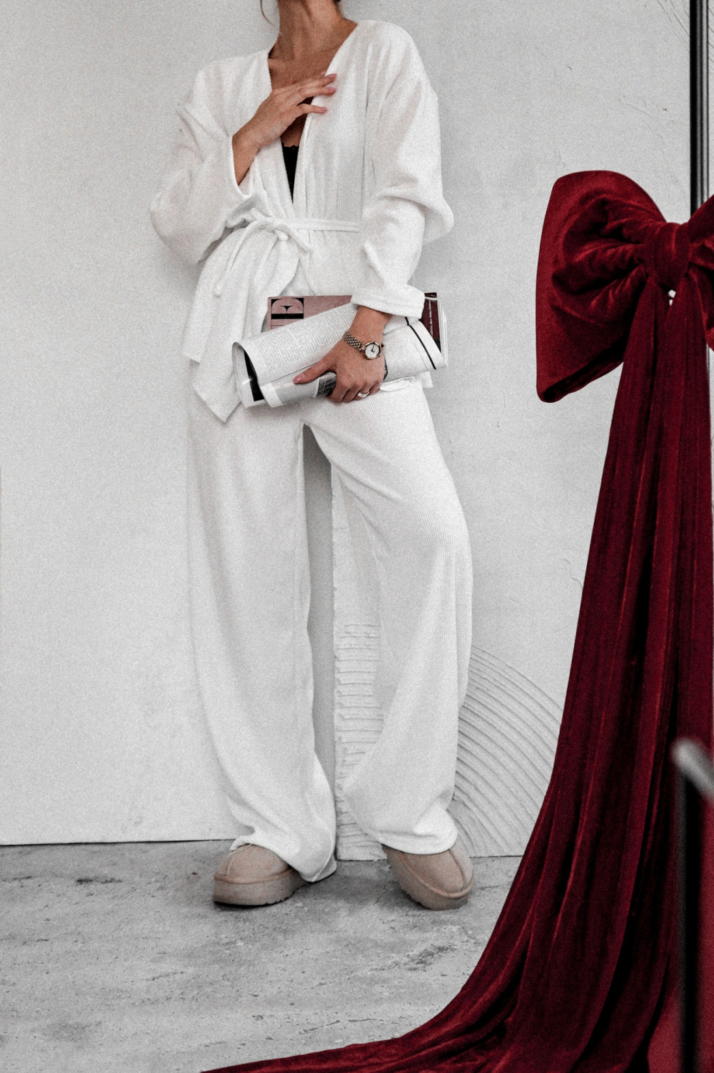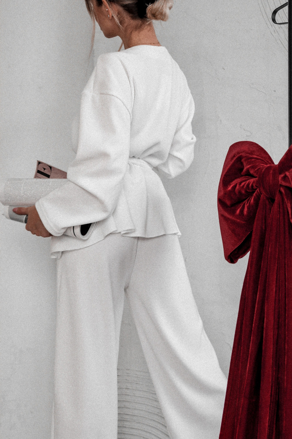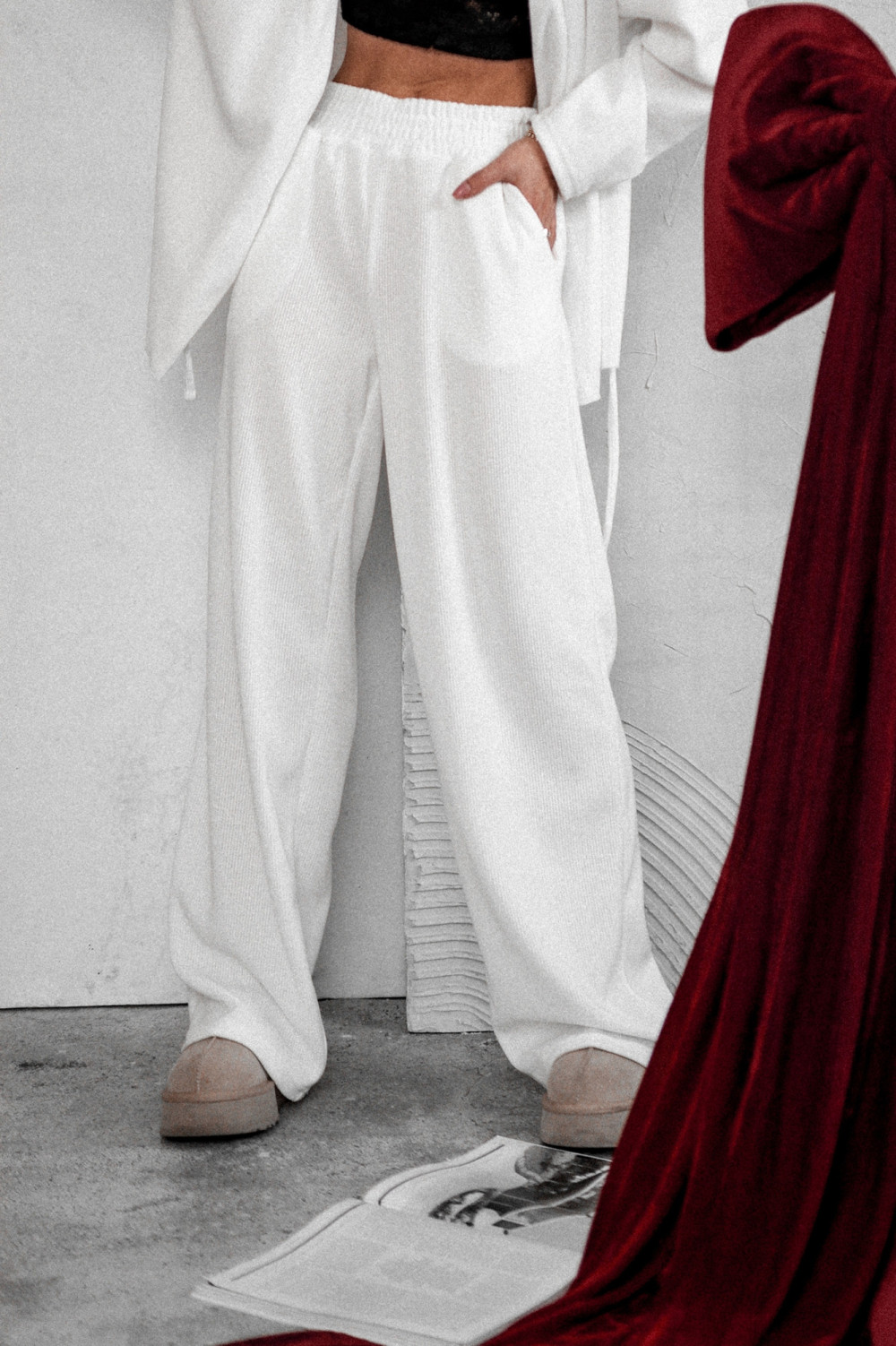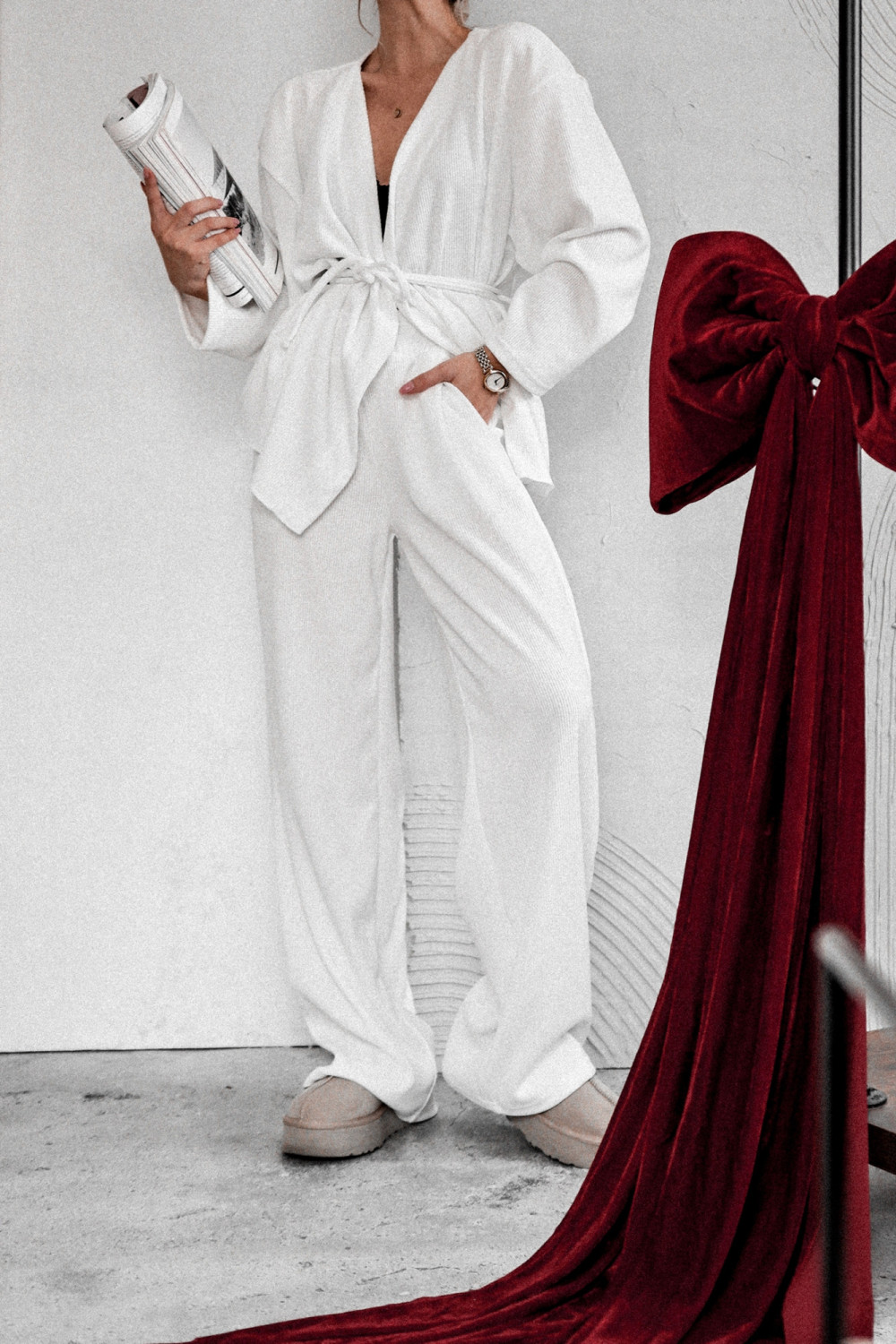 To komplet, który łączy minimalizm z modowym pazurem — idealna baza wielu stylizacji, zarówno tych casualowych, jak i bardziej eleganckich. Sprawdzi się świetnie na co dzień, do pracy, a nawet jako smart loungewear w luksusowym wydaniu.