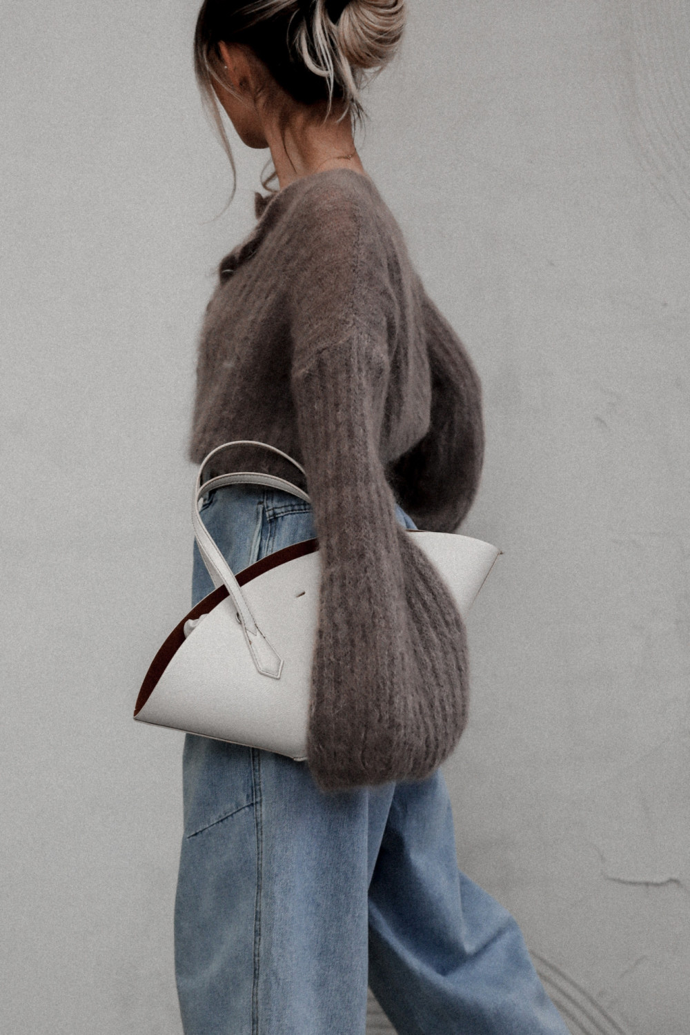 SWETER EDGE OF ELEGANCE Z POSZERZANYM RĘKAWEM 80% KID MOHER - MOKKA