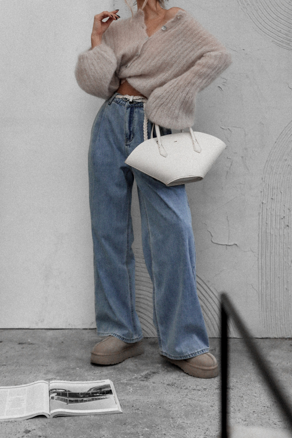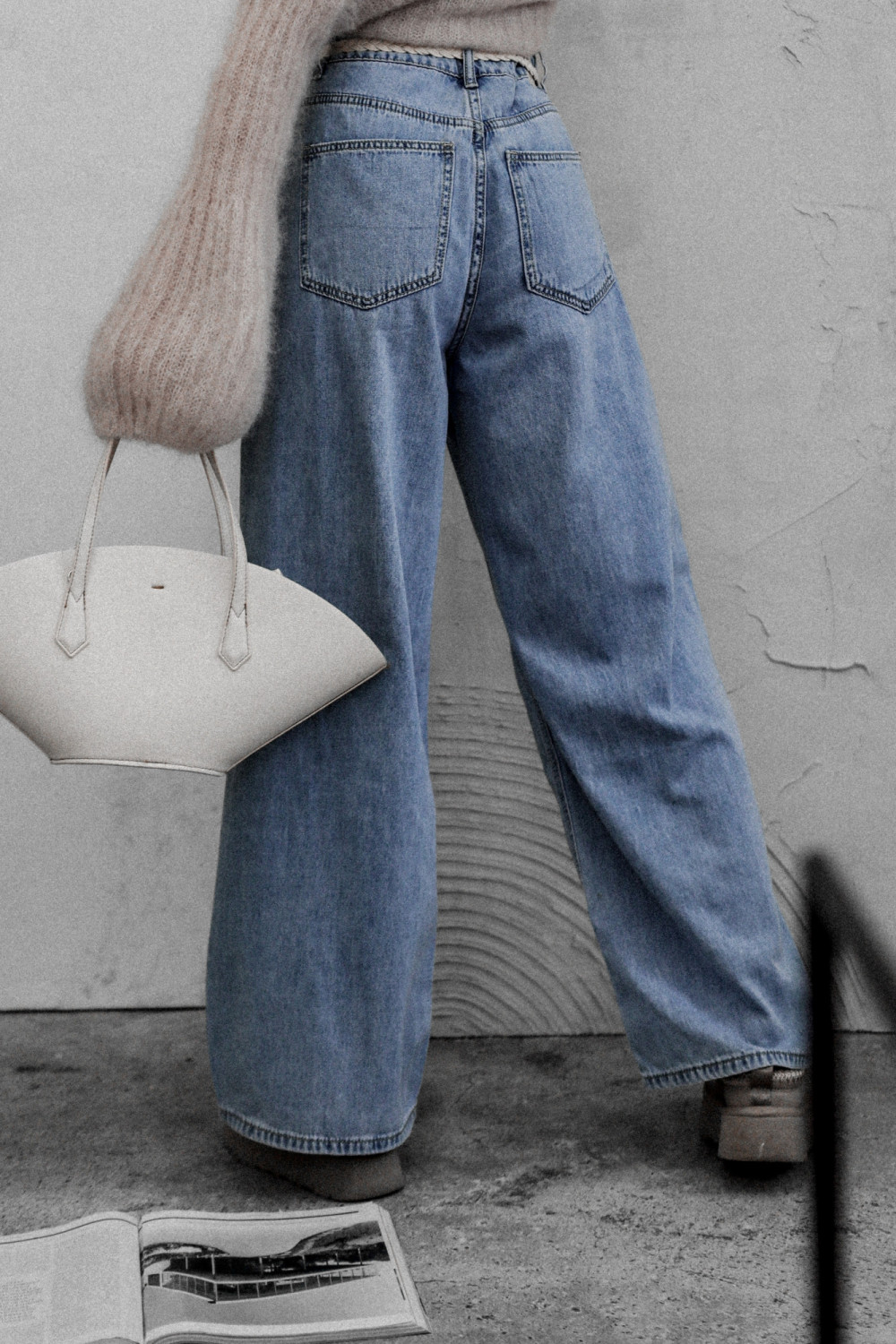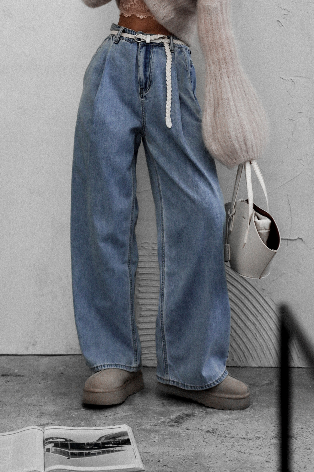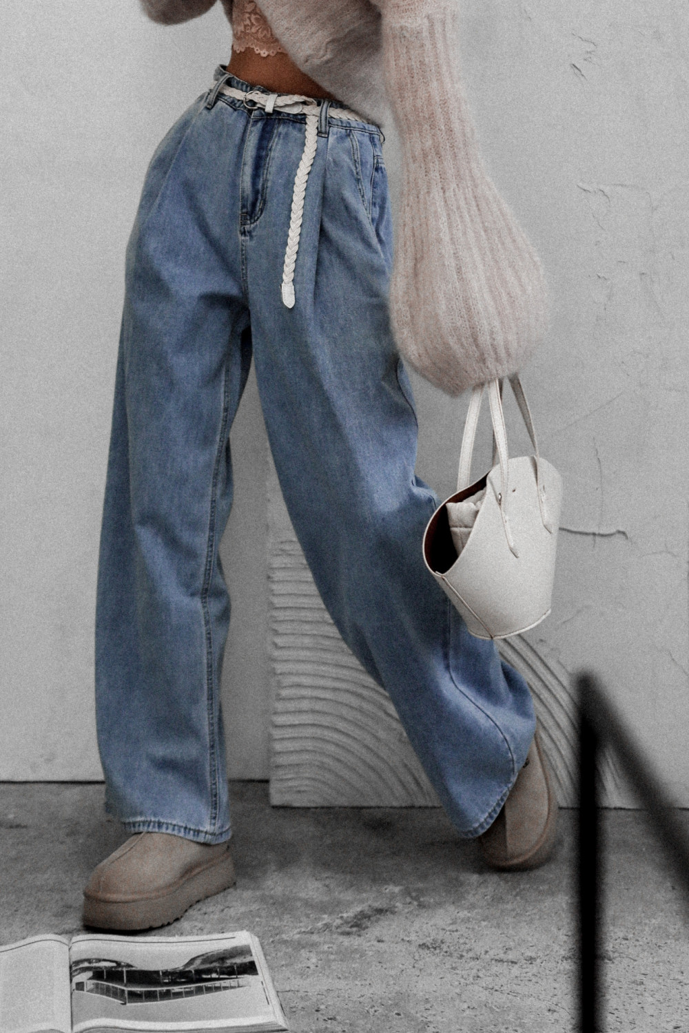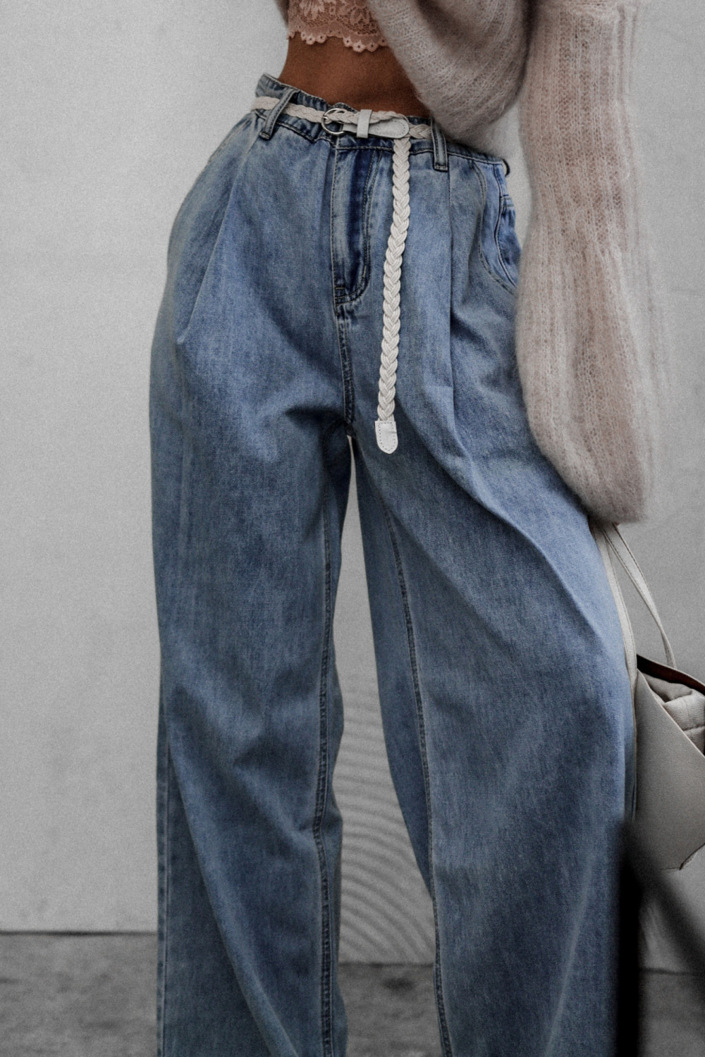 Dopełnieniem modelu jest pasek w zestawie, pozwalający dopasować spodnie do preferowanego fasonu i dodatkowo akcentujący talię. Jasnoniebieski denim tworzy ponadczasową bazę, która świetnie komponuje się zarówno z minimalistycznymi lookami, jak i bardziej wyrazistymi stylizacjami.