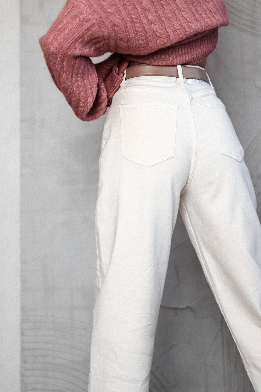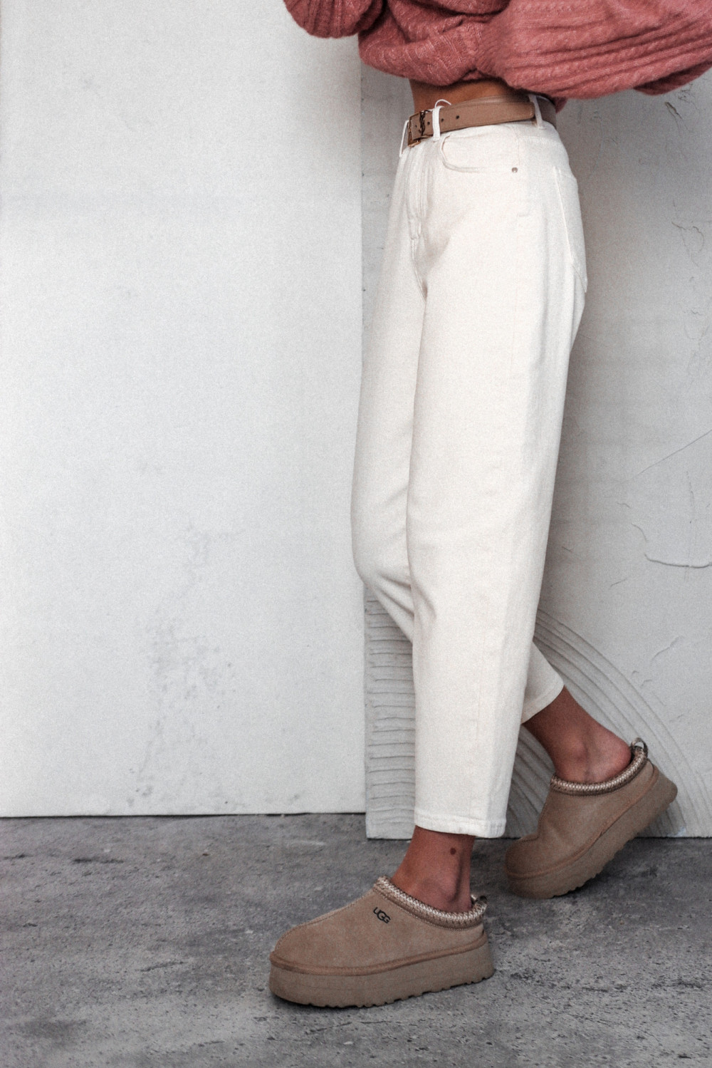 SPODNIE JEANSOWE POWER MOVE O KROJU MOM FIT - ECRU
