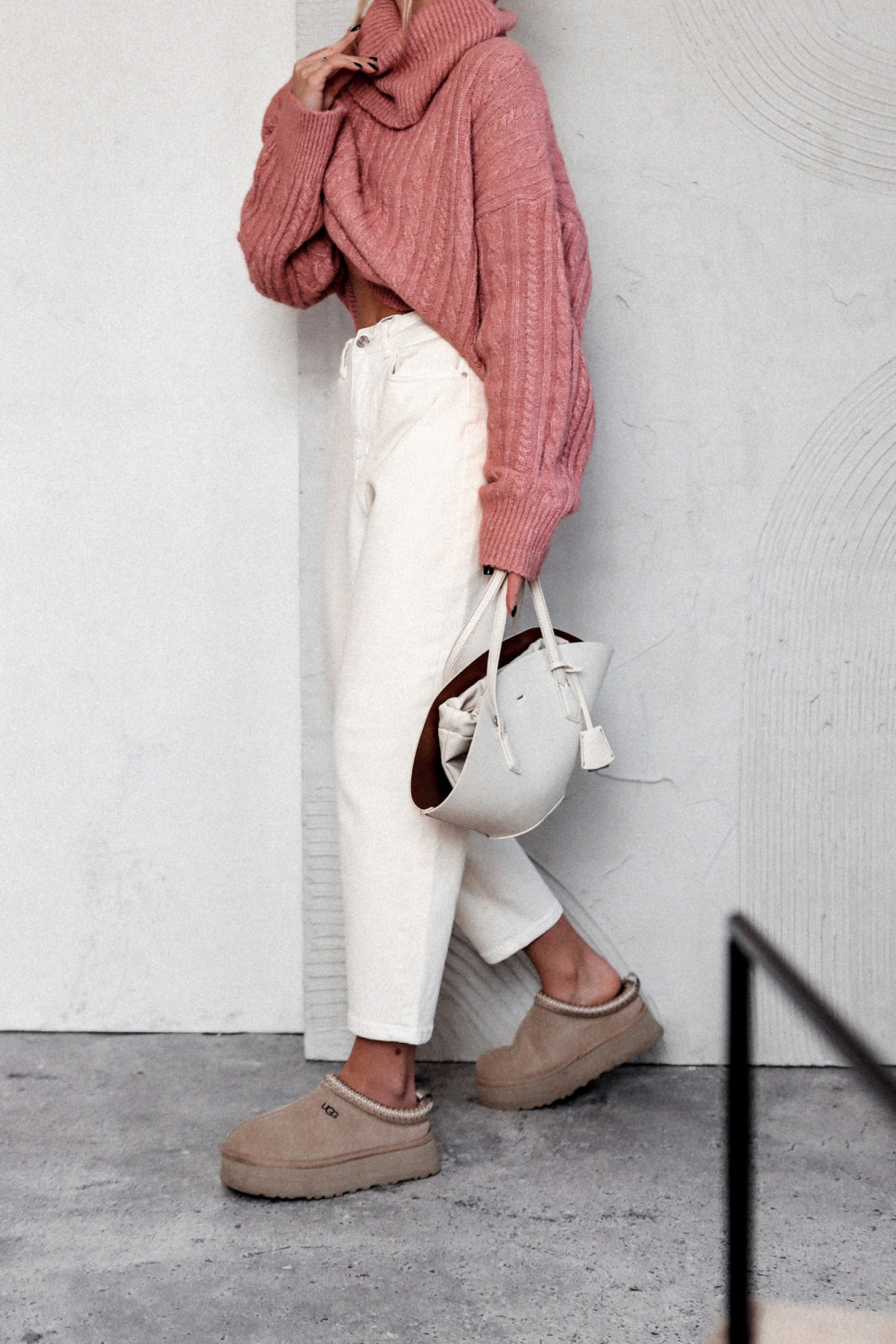 Jeansowe spodnie w kolorze ecru o kroju mom fit to ponadczasowa propozycja, która doskonale łączy wygodę z modnym wyglądem. Model charakteryzuje się wysokim stanem z regulowanym zapięciem na guzik oraz zamek, co zapewnia komfort noszenia i dobre dopasowanie do sylwetki.