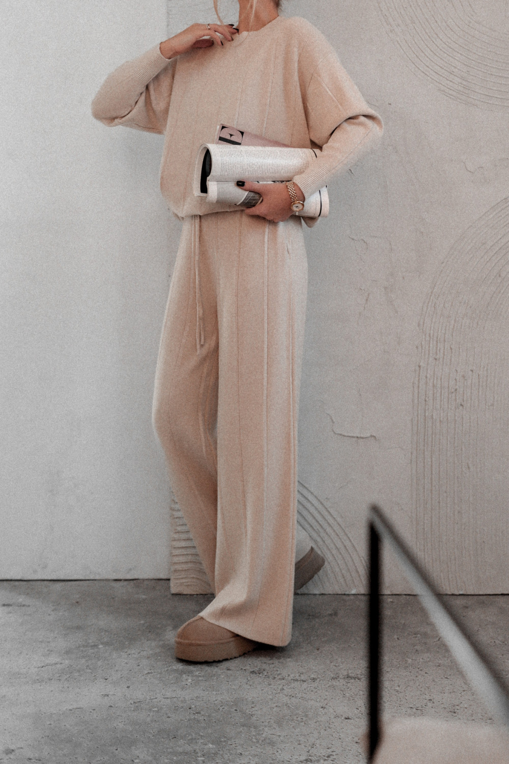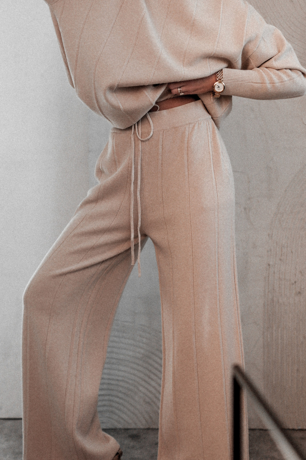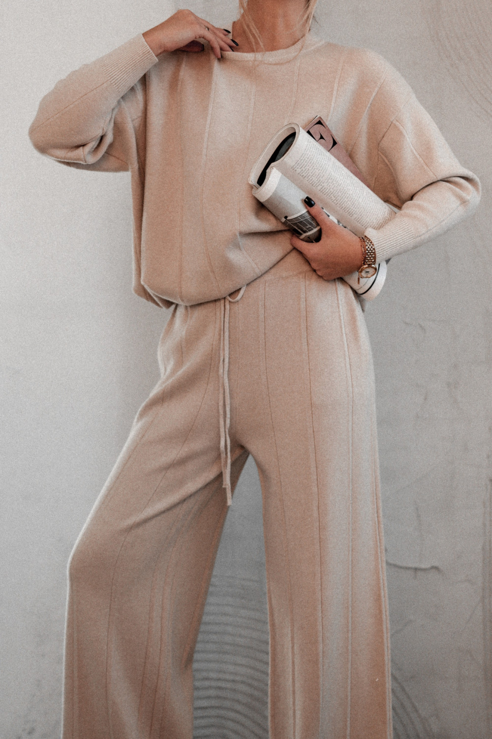 KOMPLET DZIANINOWY EMPIRE FLOW - BEŻOWY