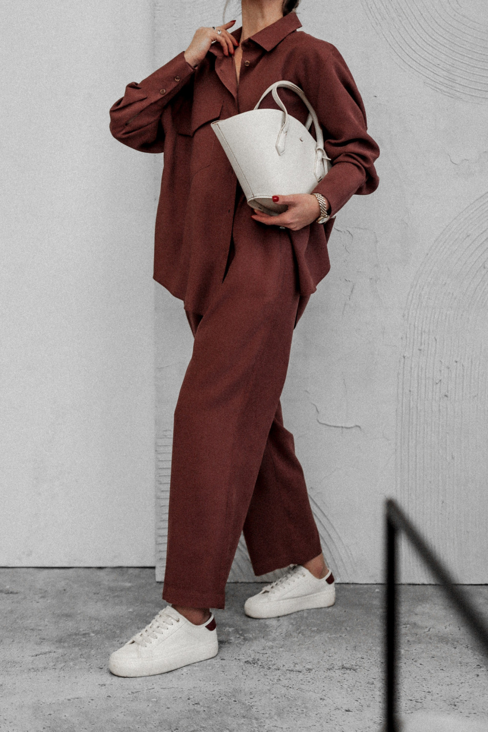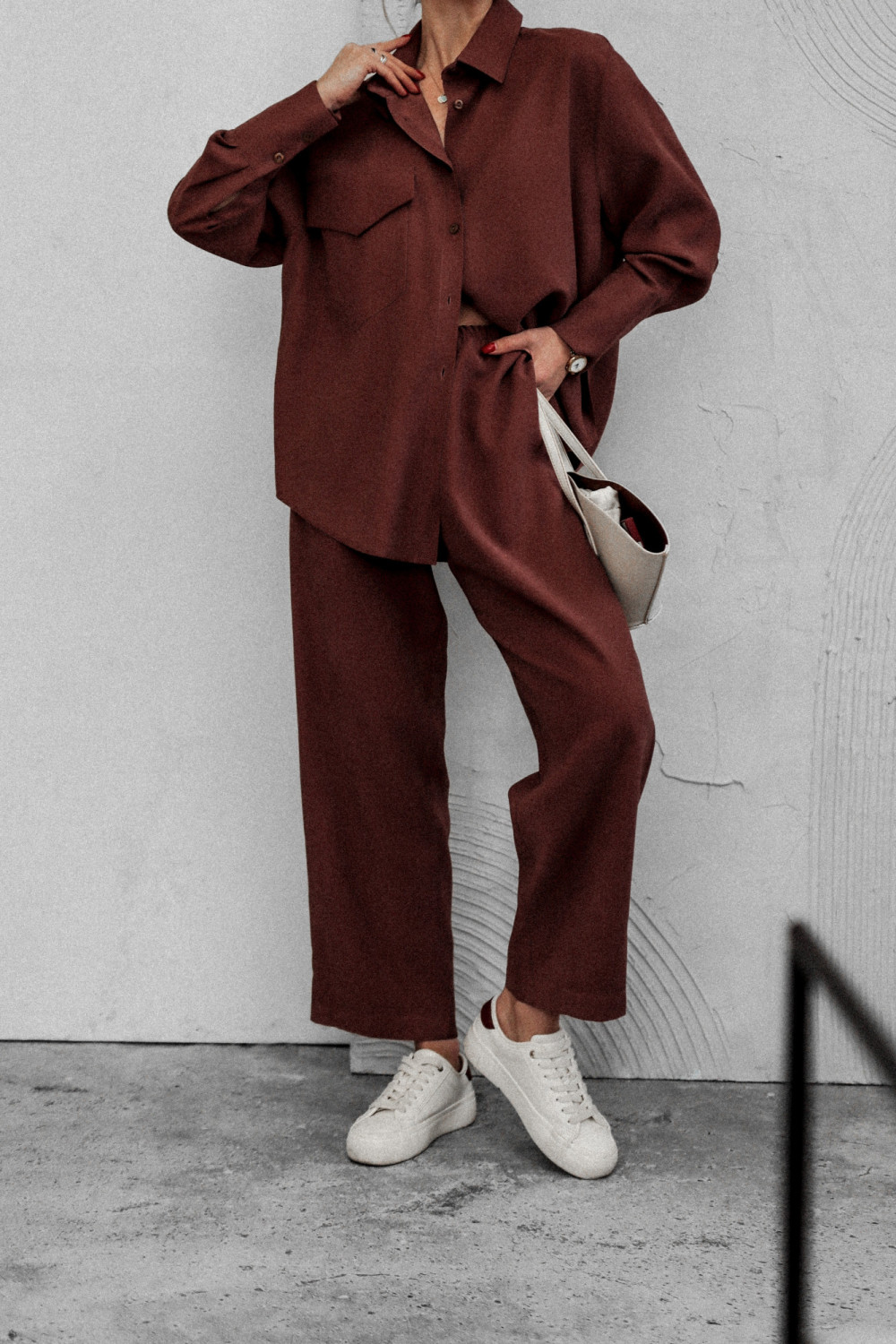 KOMPLET MODERN SET - KOSZULA I SPODNIE BURNT SIENNA