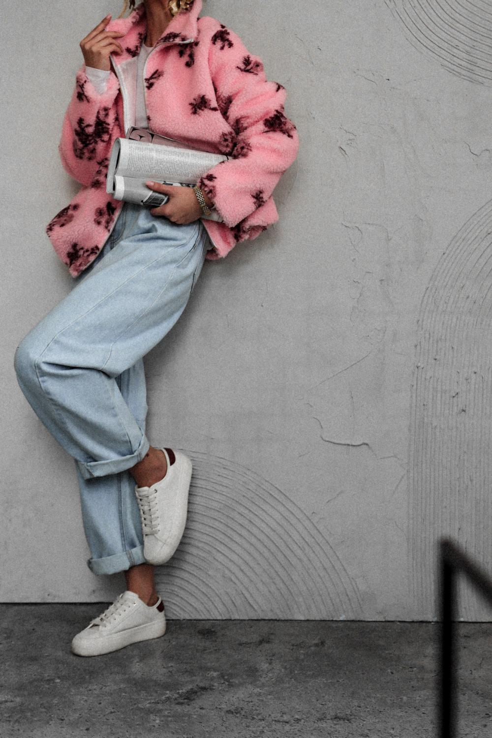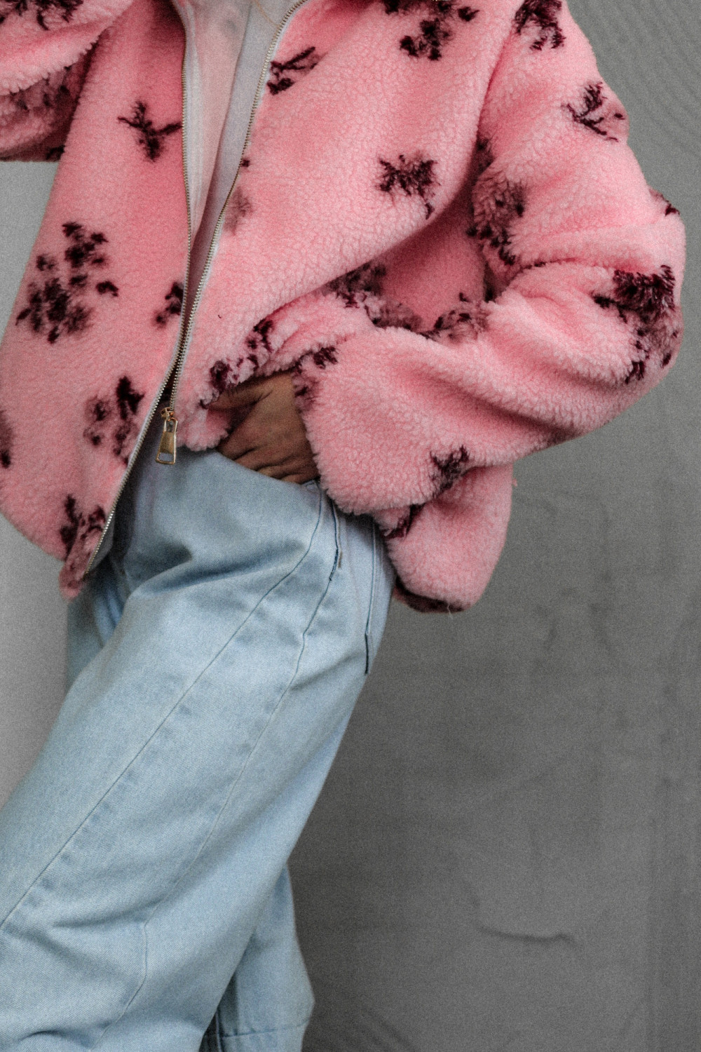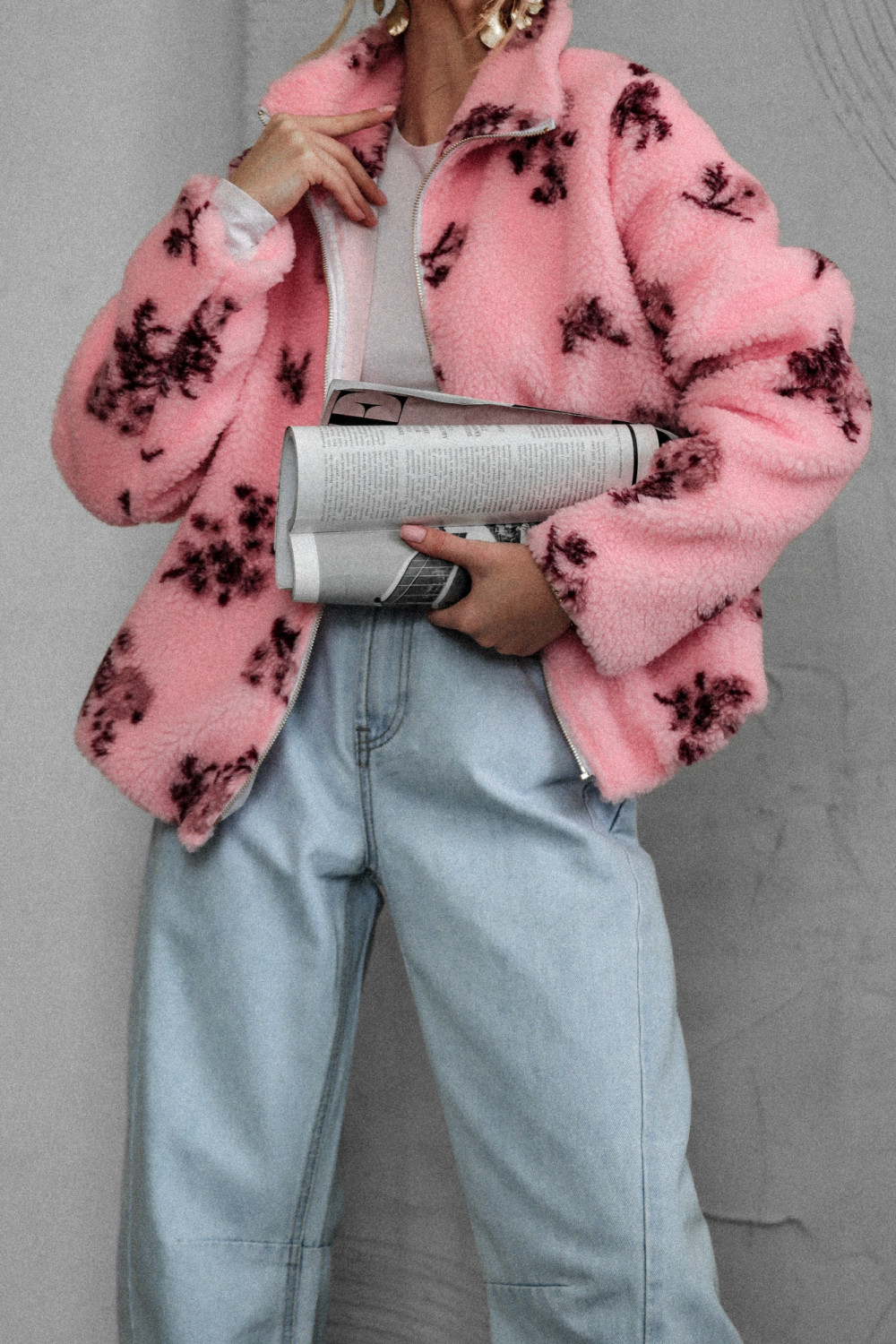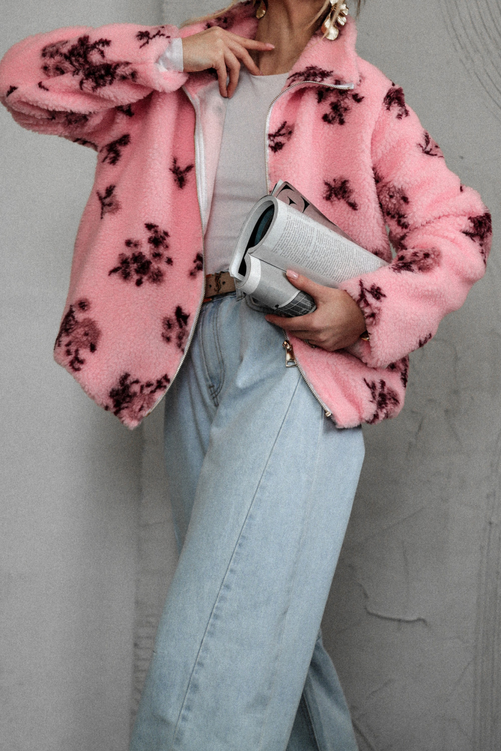 KURTKA FLORAL COMMAND Z DOMIESZKĄ WEŁNY - RÓŻOWA