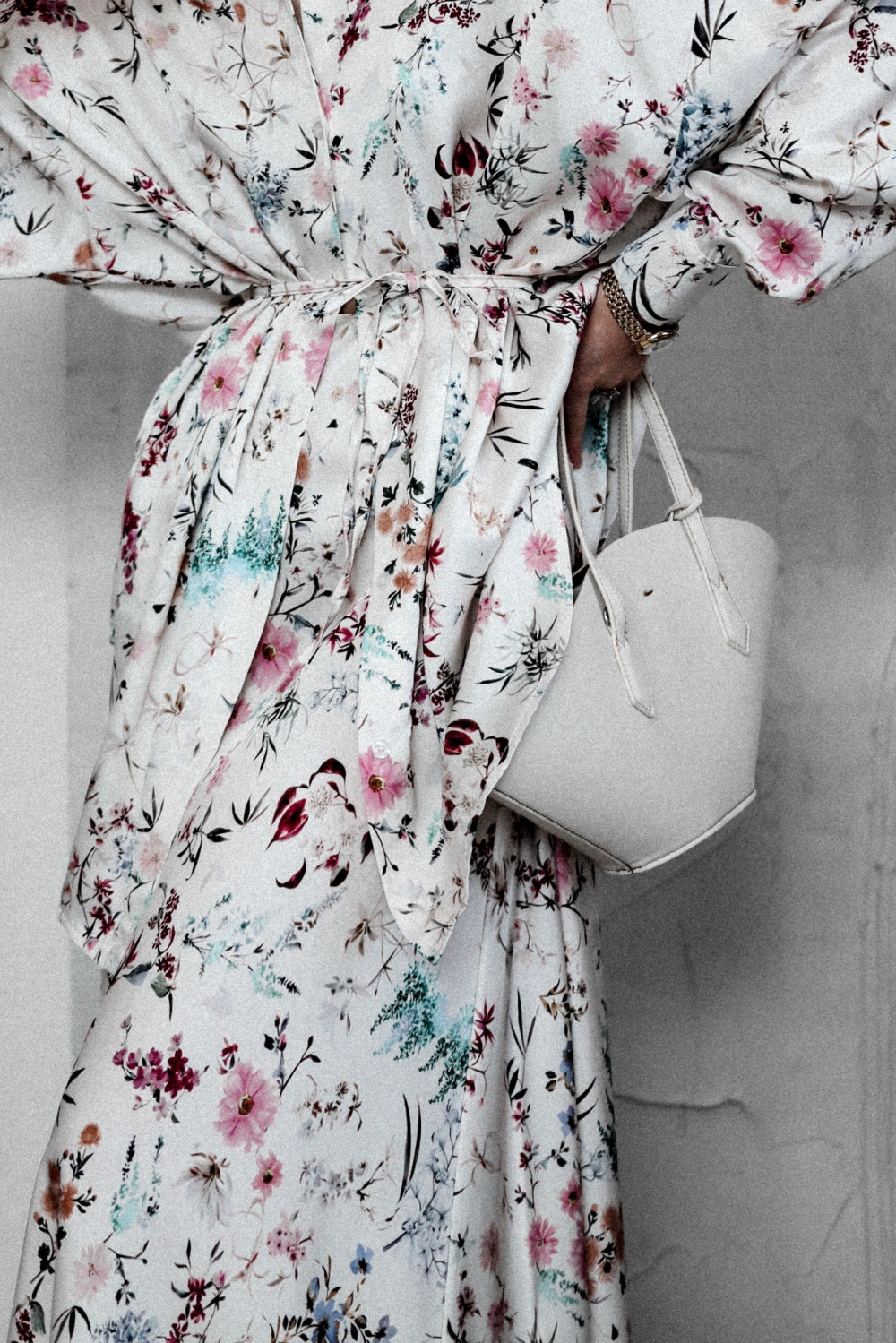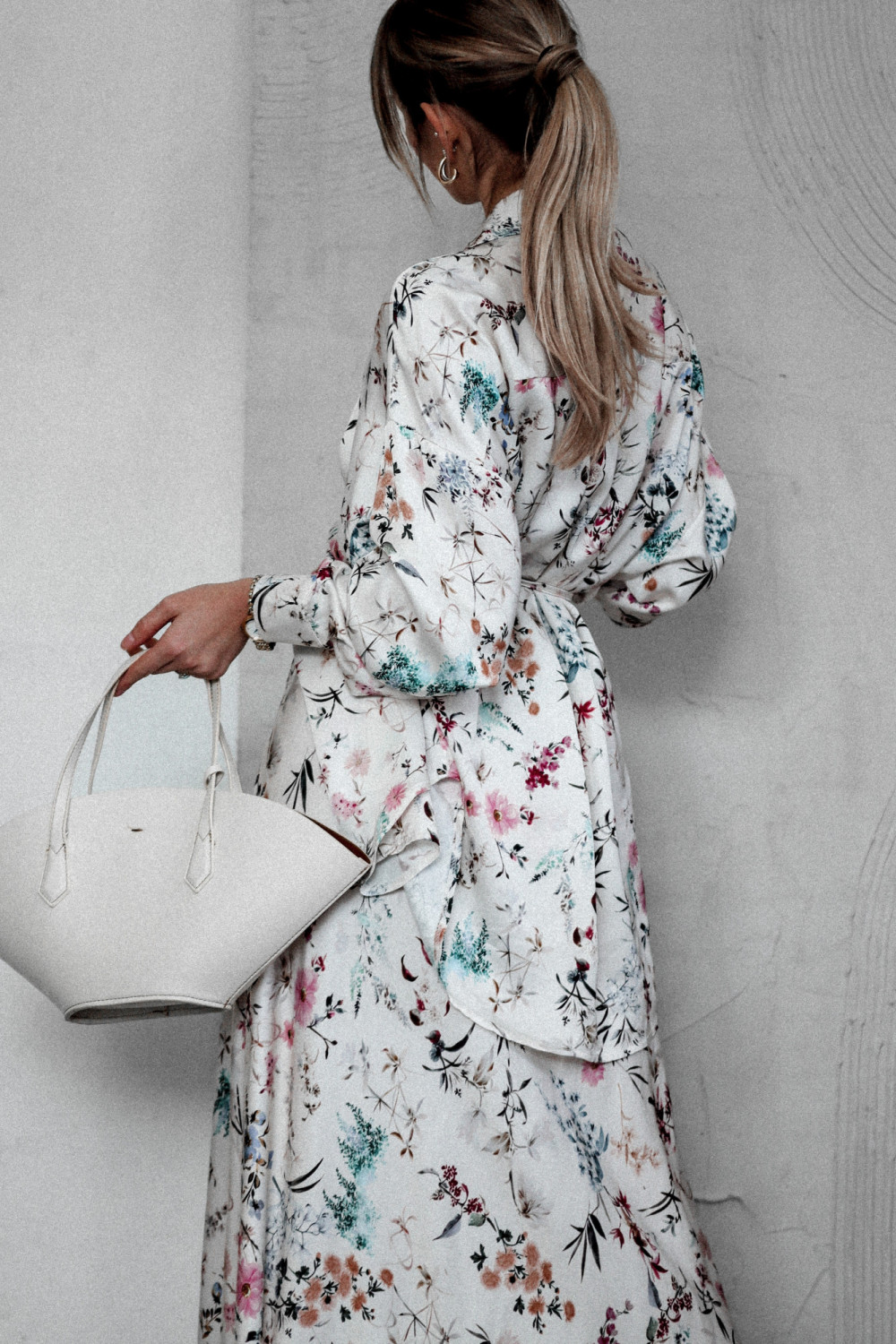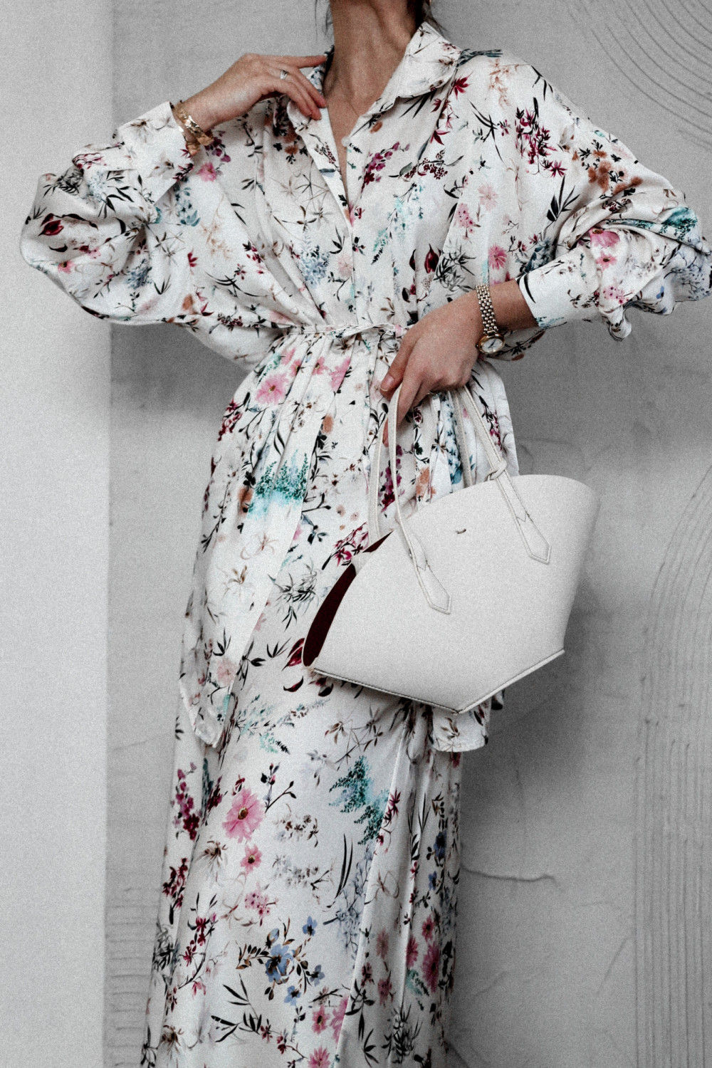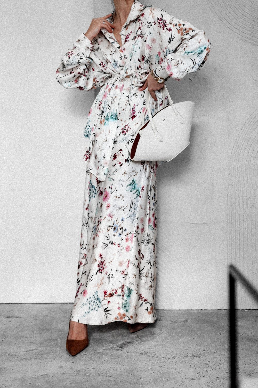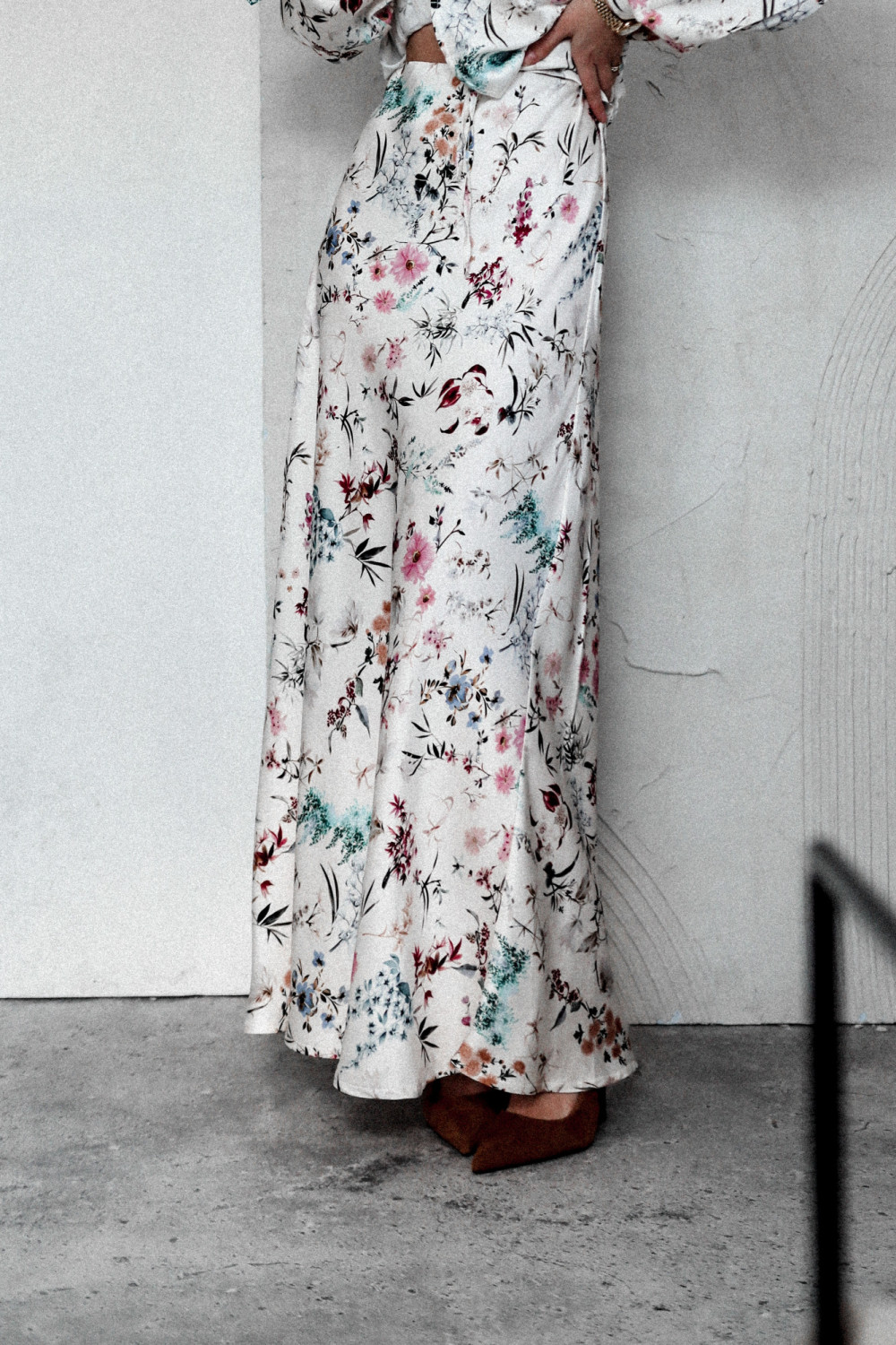 KOMPLET WILD BLOSSOM Z WISKOZY KOSZULA + SPÓDNICA MAXI W KWIATKI - ECRU