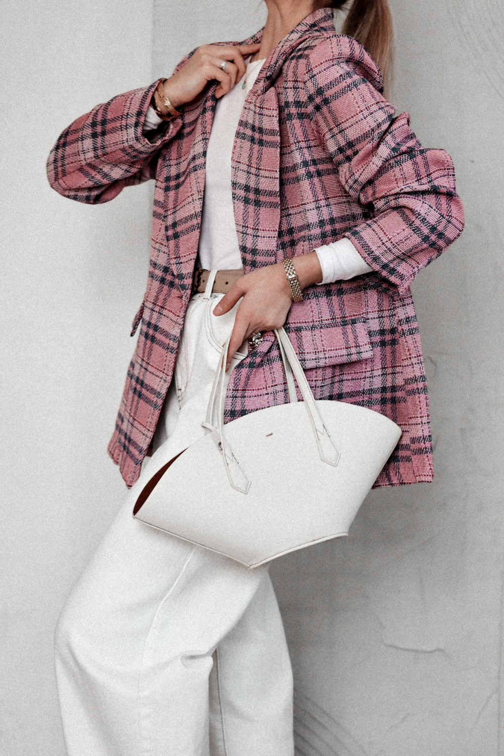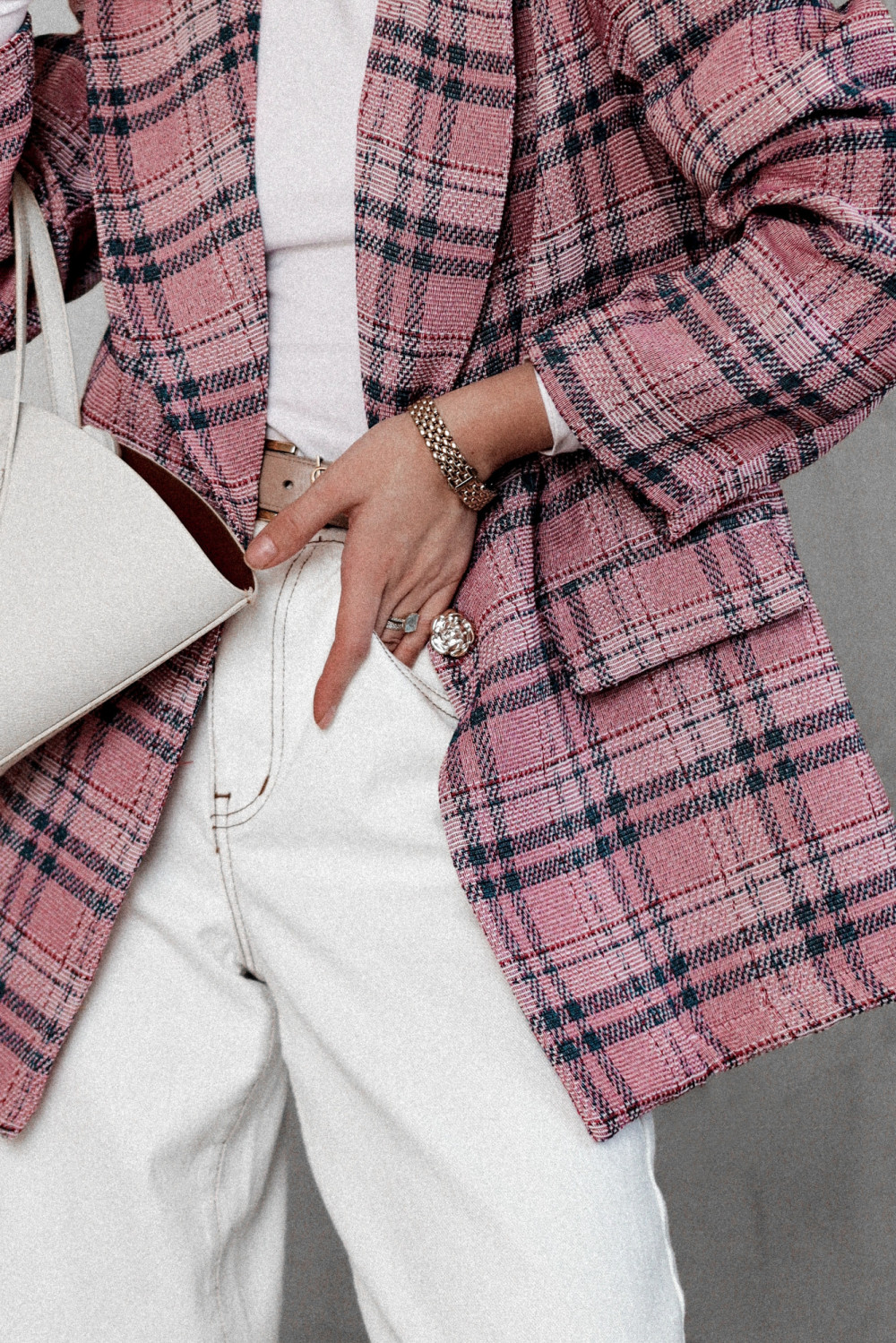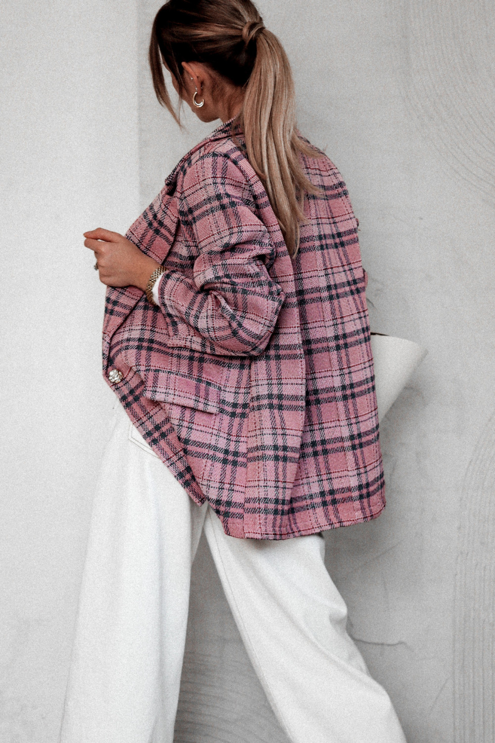 MARYNARKA POWER CHECK O KROJU OVERSIZE W KRATKĘ - RÓŻOWA