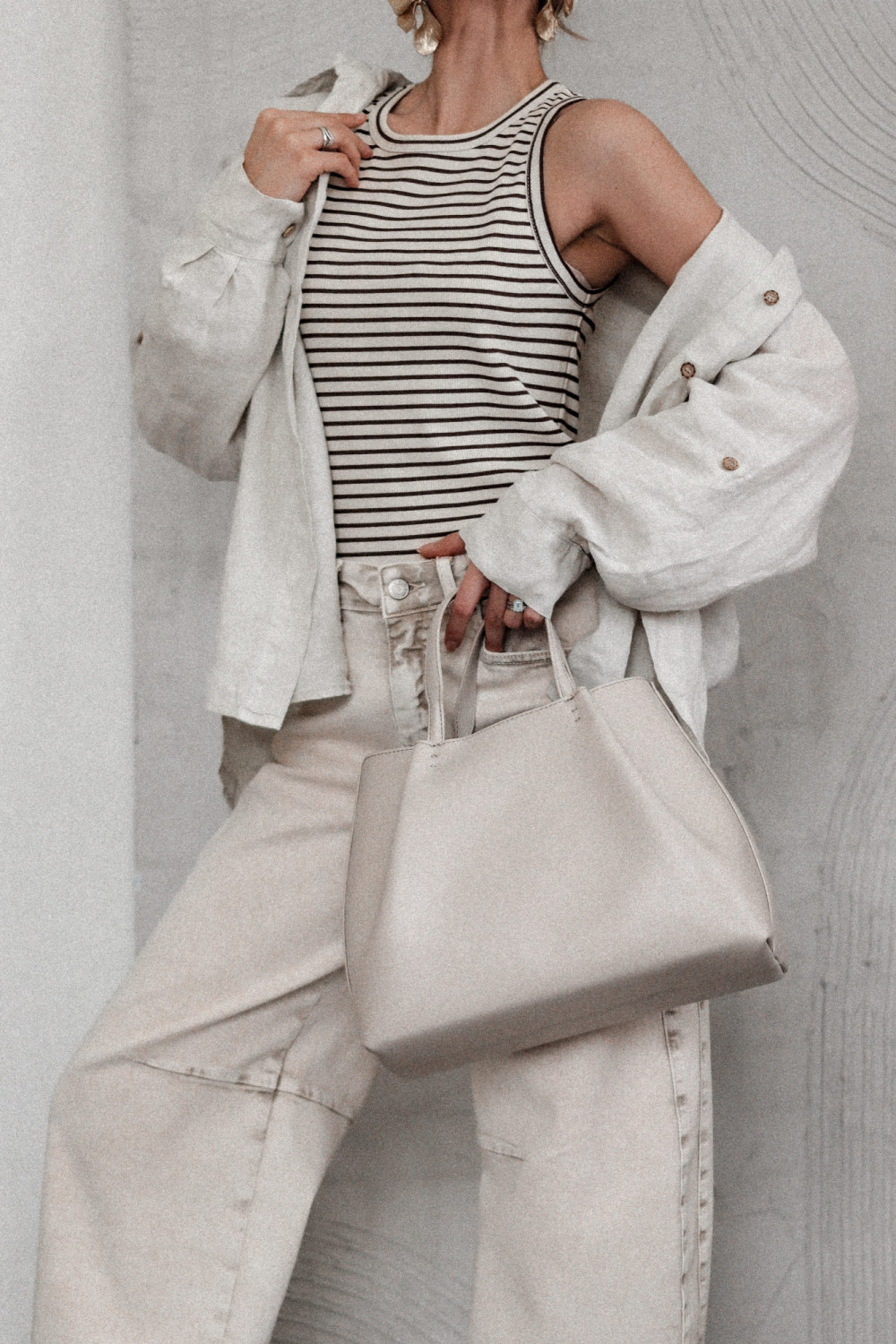 Wykonany z wysokiej jakości bawełny, top gwarantuje przewiewność oraz wygodę przez cały dzień. Wzór w paski w odcieniach beżu i czekolady dodaje mu elegancji i wpisuje się w naturalną, stonowaną paletę kolorystyczną, która pasuje do wielu elementów garderoby.