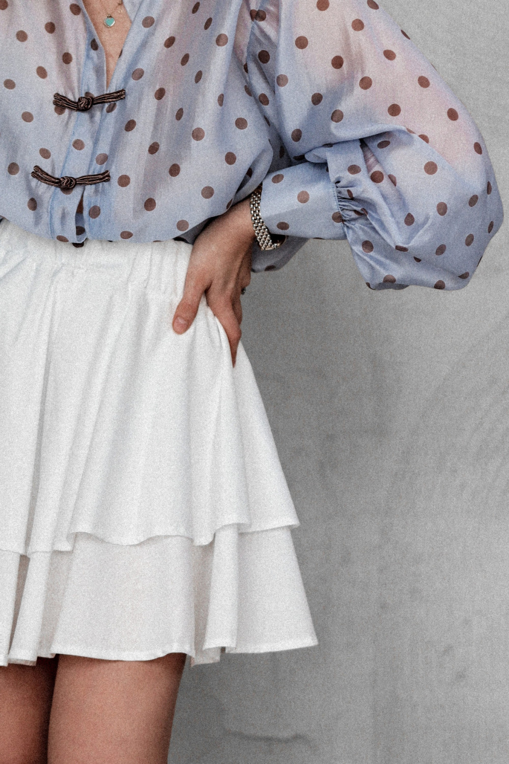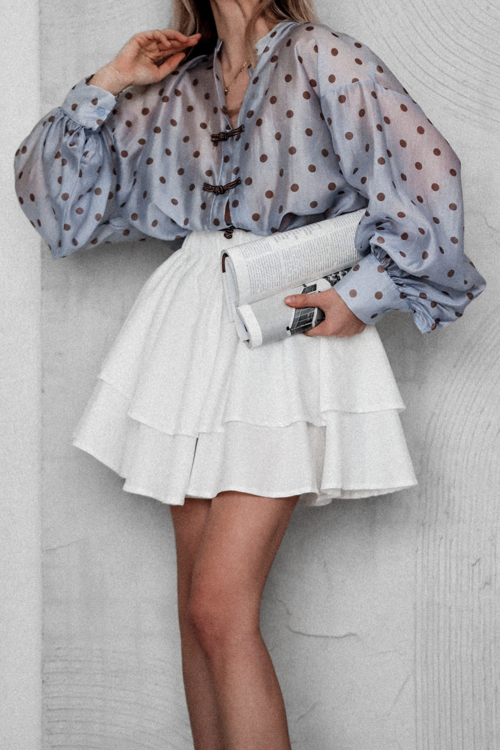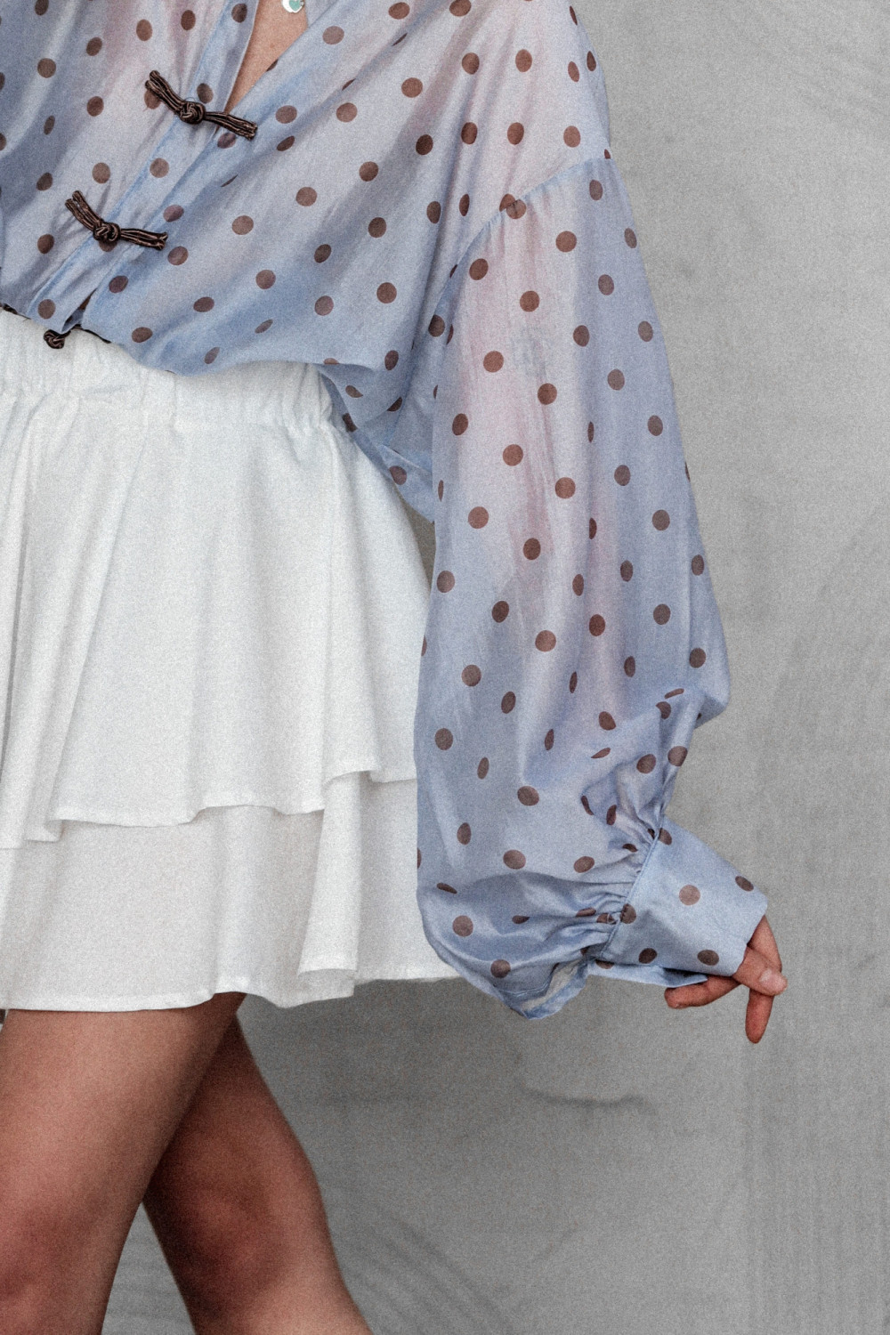 KOSZULA STATEMENT DOTS Z RĘKAWEM TYPU BALLOON - BŁĘKITNA